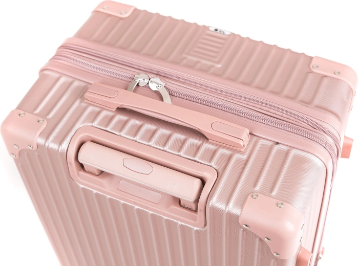 - Duurzaamheid en stijl: stevige ABS-schaal met verstevigde hoeken in elegant roze.