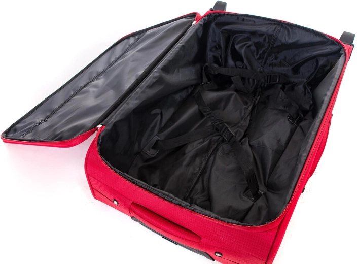 Zoekt u een ruime en lichte koffer voor vakantie of zakenreizen? De textiele reiskoffer TEX15 in elegant rood biedt een royale inhoud van 85 liter en dankzij de flexibiliteit van de stof is er lichte ruimteaanpassing mogelijk. Gemakkelijk te hanteren dankzij het duo wieltjes, het boven- en zijhandvat en de soepel uitschuifbare telescopische handgreep met vergrendeling tegen onbedoeld inschuiven.