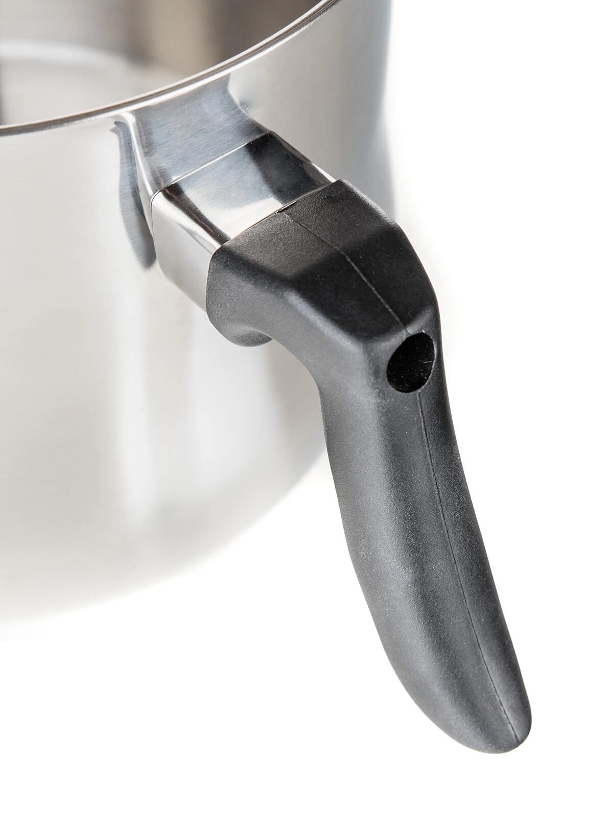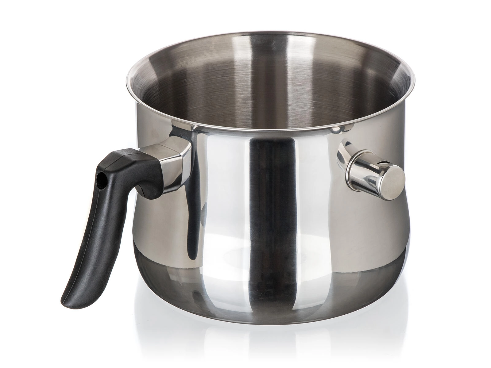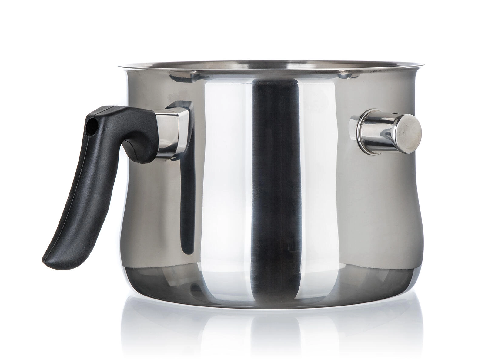 Dankzij hoogwaardig roestvast staal is de pan duurzaam, makkelijk te reinigen en gaat hij lang mee. De melkpan is perfect voor de dagelijkse bereiding van melk, pudding, griesmeel- en andere papsoorten, sauzen of voor het smelten van chocolade zonder risico op aanbranden.