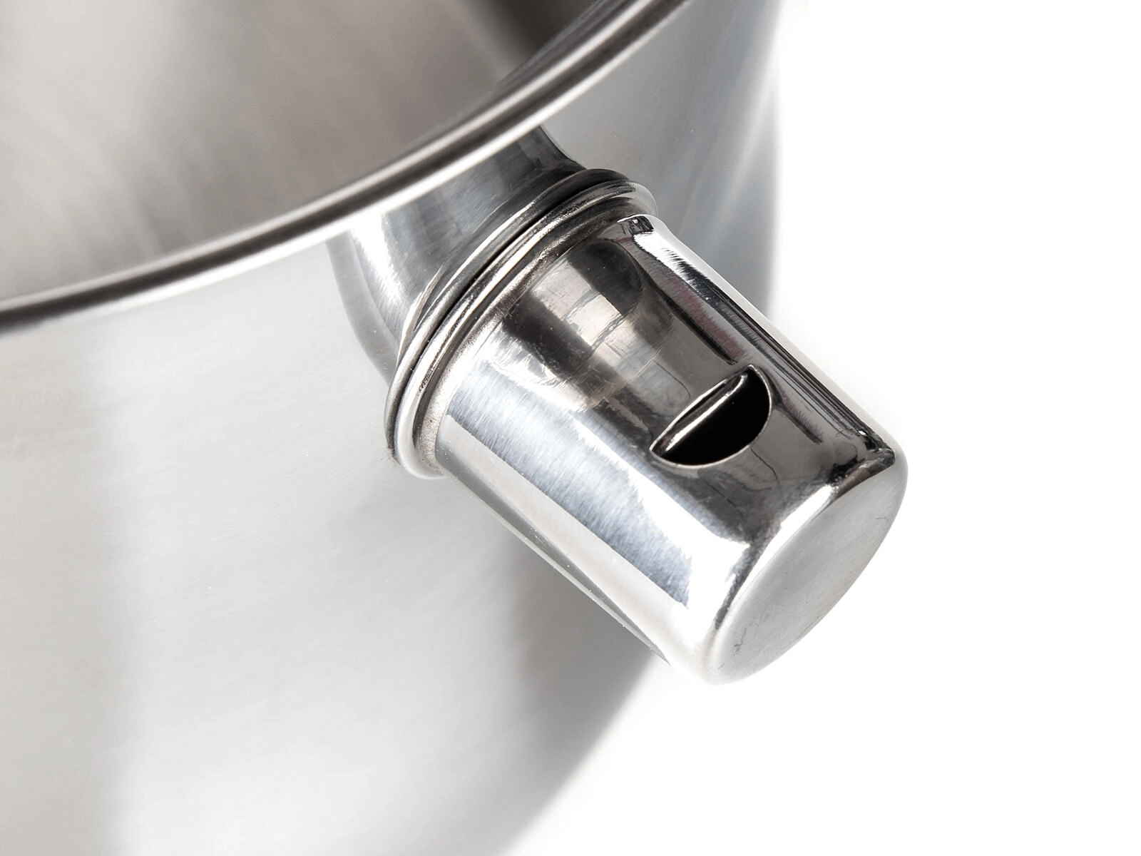 Zodra het water in de dubbele wand het kookpunt bereikt, waarschuwt het fluitje je – zo houd je controle zonder voortdurend toezicht.