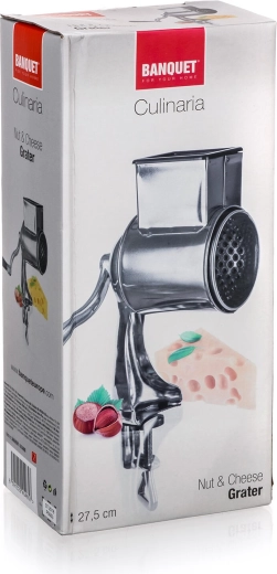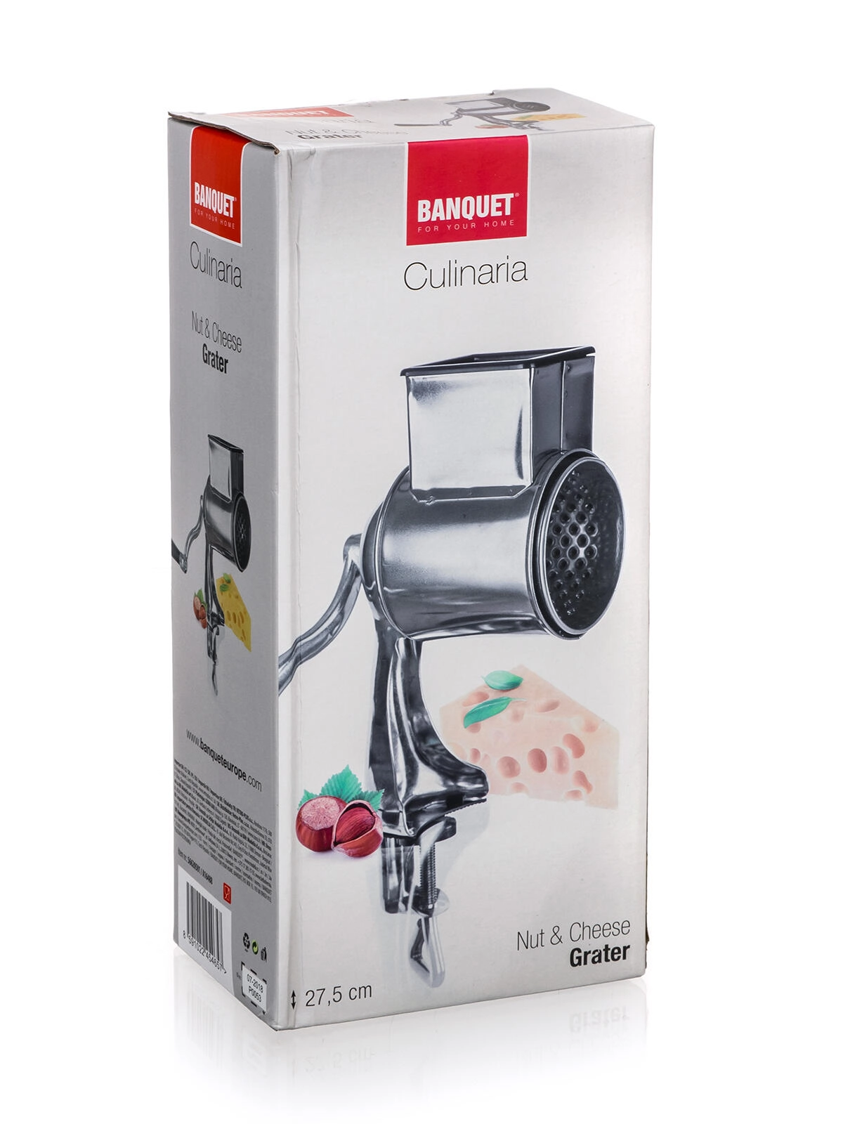 Ontdek de betrouwbare handmolen CULINARIA van hoogwaardig roestvrij staal, die moeiteloos paneermeel, noten en harde kazen verwerkt. Dankzij de robuste rvs-trommel en de soepele slinger bereik je gelijkmatig malen zonder inspanning.
