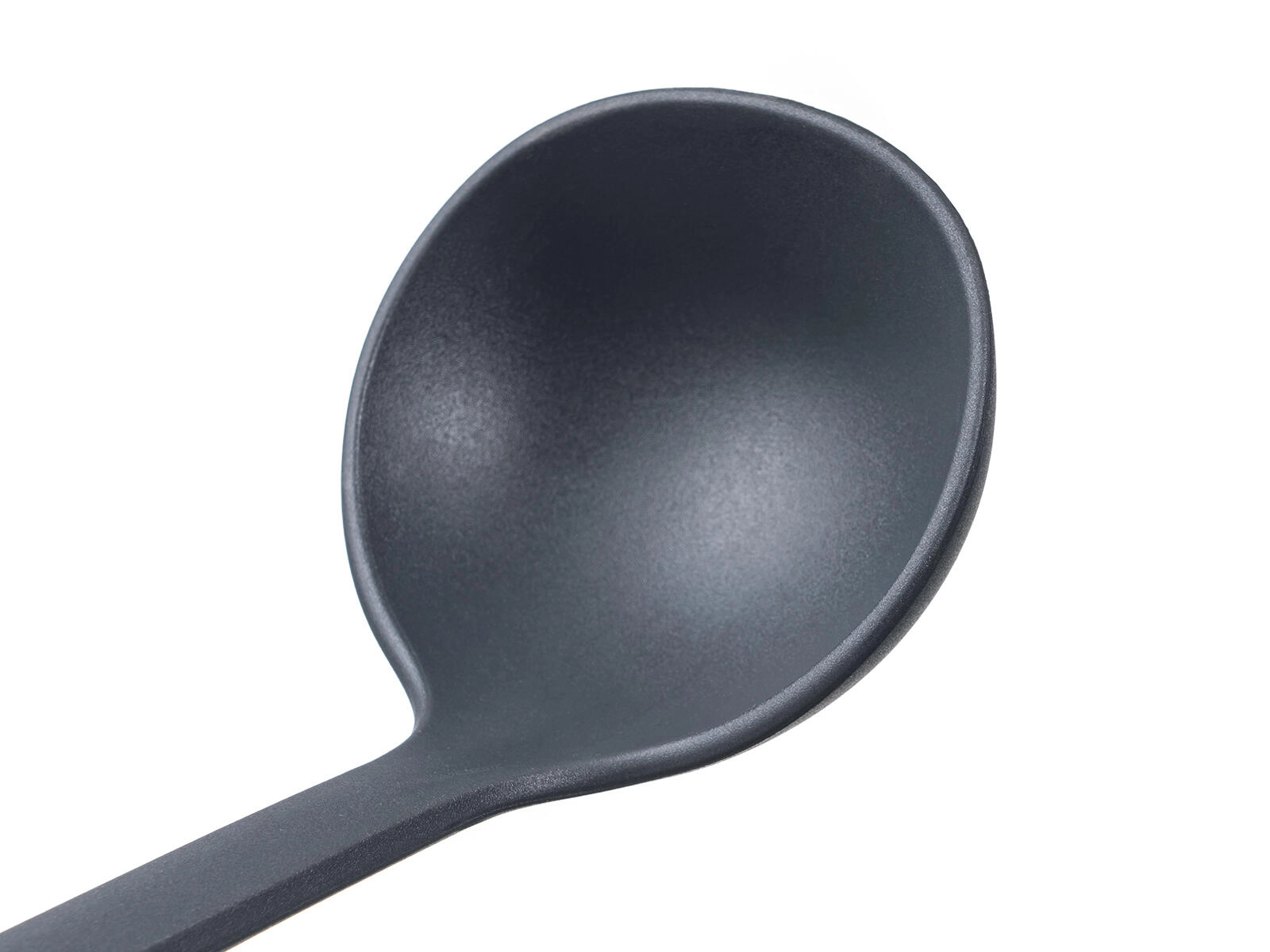 De CULINARIA Grey soeplepel combineert de duurzaamheid en het lage gewicht van nylon PA66 met doordachte ergonomie voor comfortabel serveren van soepen, sauzen en bouillons. Dankzij het gladde oppervlak is hij veilig voor teflon- en keramische oppervlakken en laat hij geen krassen achter.