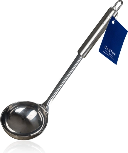 Praktische roestvrijstalen pollepel van 31 cm, ideaal voor zowel professioneel als thuisgebruik. Biedt een duurzame uitvoering, eenvoudig onderhoud en ophangmogelijkheid dankzij het oog. Vaatwasmachinebestendig en met een tijdloos design dat in elke keuken past.