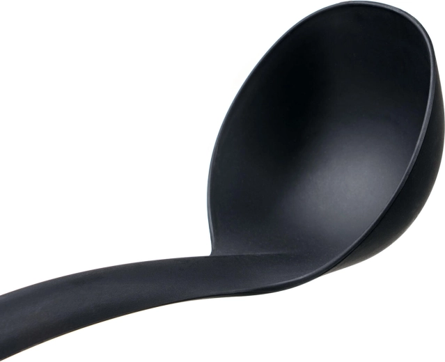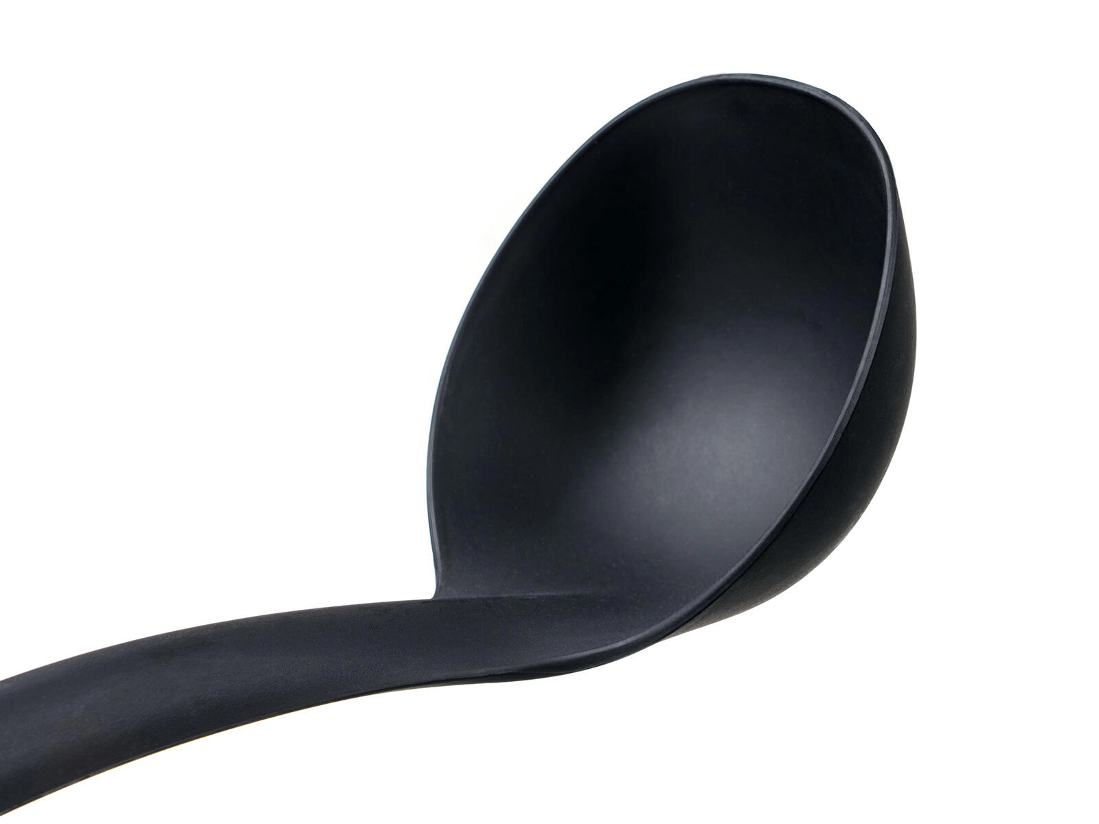 De HANDY soeplepel van hoogwaardig nylon PA66 is ideaal voor dagelijks koken. Dankzij de diepe lepel schept u comfortabel soepen, bouillons en goulash, terwijl het zachte materiaal pannen en potten met antiaanbaklaag niet bekrast. De lichte constructie en uitgebalanceerde handgreep zorgen voor een zekere grip en comfortabel serveren.