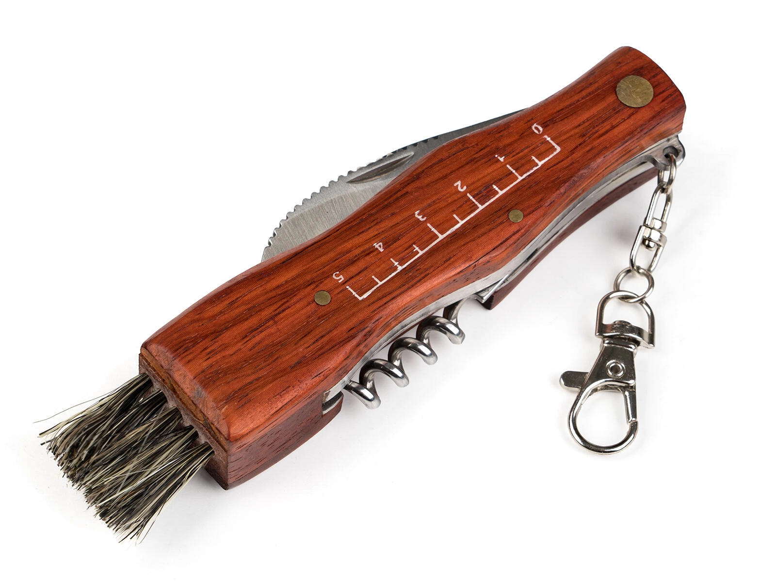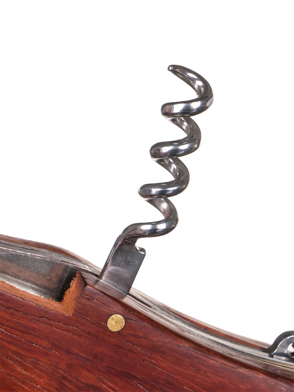 Het houten handvat biedt een prettige grip en duurzaamheid, terwijl het opvouwbare design zorgt voor veilig en compact transport. Ook de kurkentrekker ontbreekt niet, ideaal voor onderweg en bij picknicks.