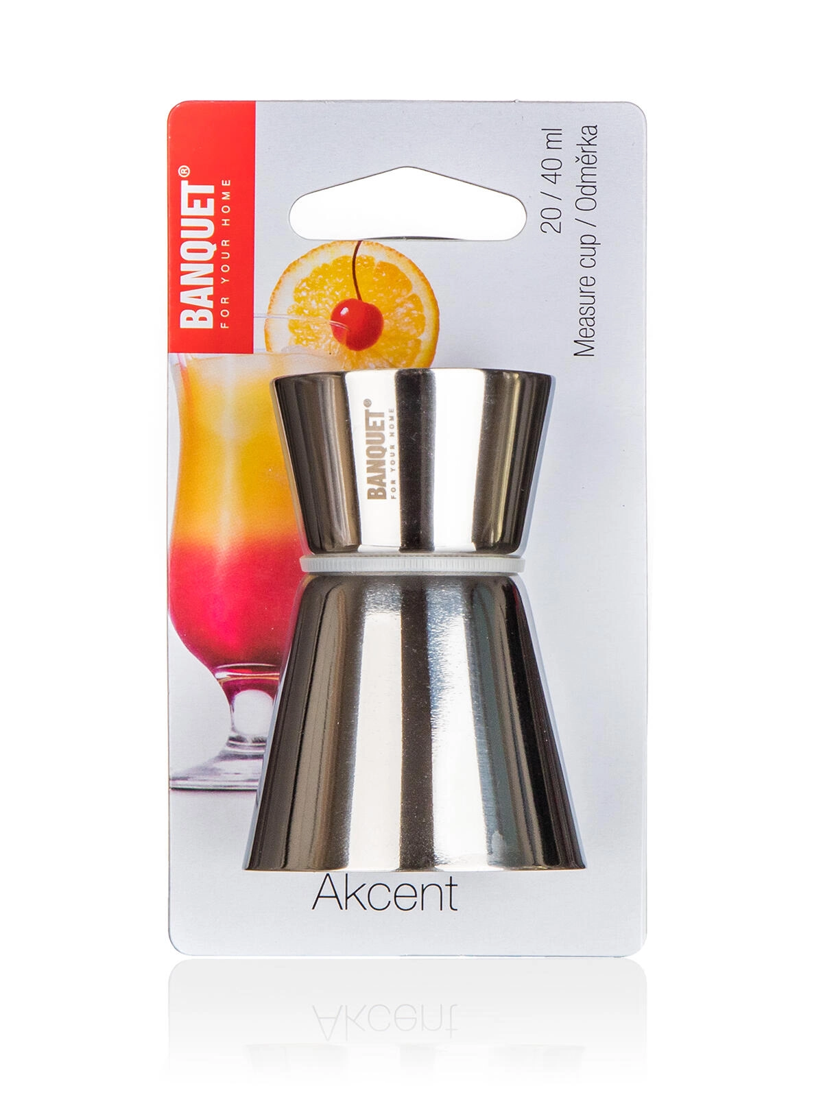 Professionele AKCENT barmaatbeker van roestvrij staal met volumes van 20 ml en 40 ml voor nauwkeurig doseren van ingrediënten voor cocktails en mixdranken. Dankzij de duurzame roestvrijstalen uitvoering is hij hygiënisch, eenvoudig te reinigen en ligt hij prettig in de hand.