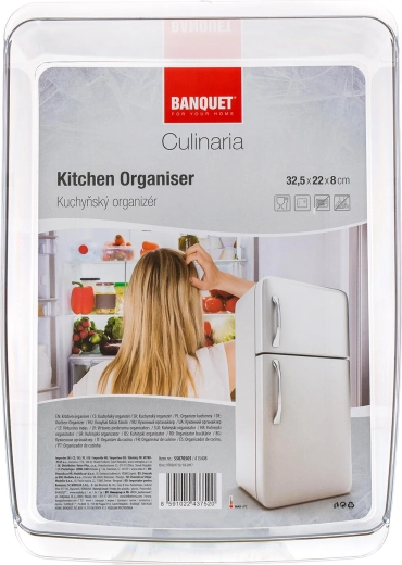 Praktische keukenorganizer voor in de koelkast CULINARIA helpt voedingsmiddelen overzichtelijk geordend te houden. Dankzij het transparante design hebt u altijd perfect zicht op de inhoud, bespaart u ruimte en blijft de koelkast langdurig schoon en netjes. Ideaal voor het opbergen van ingrediënten, snacks of kleine items. Transparant kunststof, compacte afmetingen 32,5 × 22 × 8 cm en eenvoudig onderhoud voor dagelijks gemak.