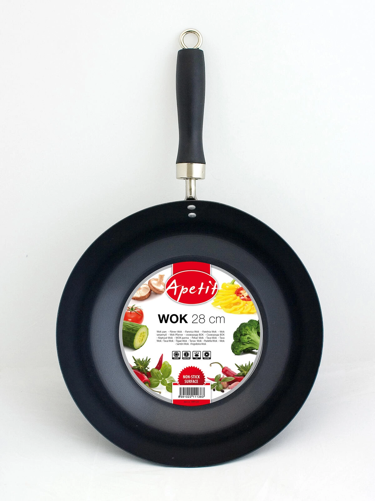 De APETIT wokpan met een diameter van 28 cm is een ideale keuze voor snel bakken, roerbakken en stir-fry. Koolstofstaal met een hoogwaardige antiaanbaklaag zorgt voor een gelijkmatige verhitting en eenvoudig loslaten van ingrediënten zonder aanbranden.