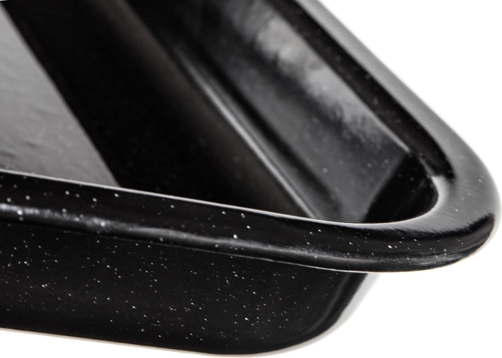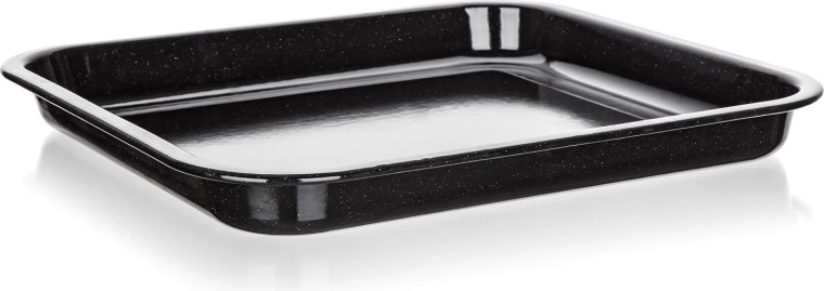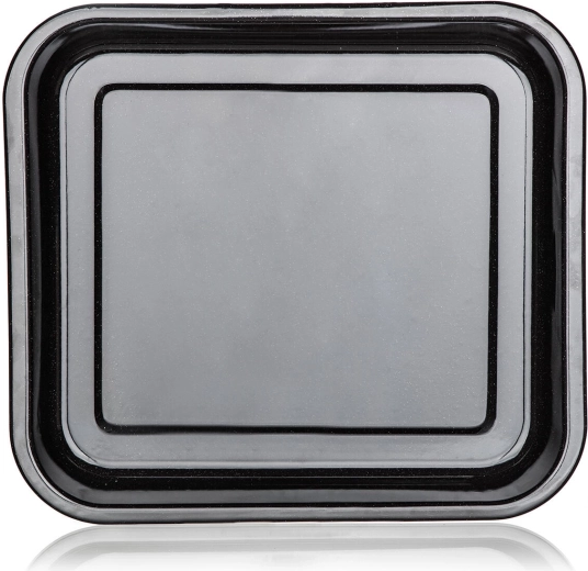 De afmeting 41 × 37 × 4 cm biedt voldoende ruimte voor de bereiding van vlees, groenten, ovenschotels en desserts. De hoge randen helpen het uitlekken van sappen te voorkomen en houden de oven schoner. De tijdloze zwarte uitvoering combineert perfect met ander keukengerei.