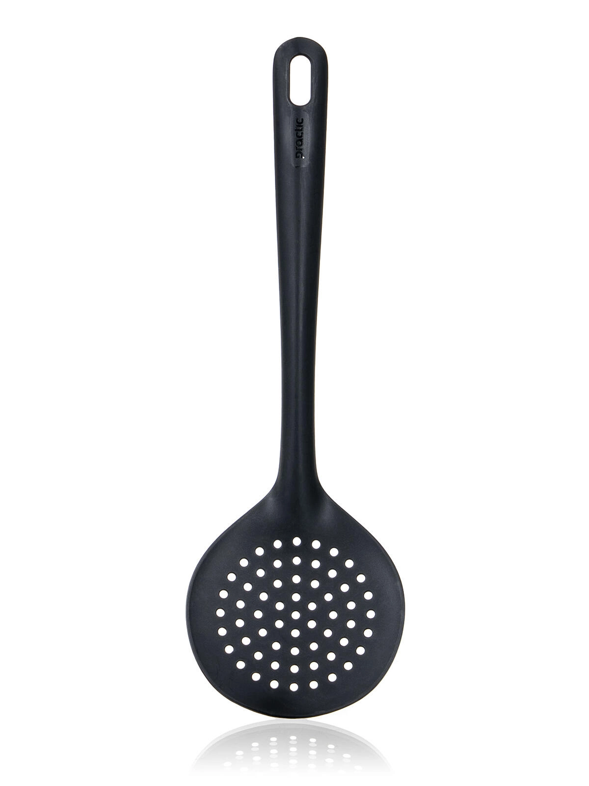Praktische keuken-schuimspaan van 34 cm van duurzaam nylon PA66 voor eenvoudig afgieten en opscheppen. Licht van gewicht, vriendelijk voor antiaanbaklagen en hittebestendig tot 210 °C. Dankzij het ophangoog heb je hem altijd bij de hand en hij is vaatwasmachinebestendig voor snelle reiniging.
