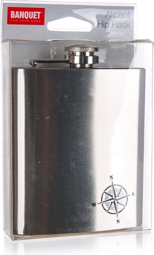Geniet overal van je favoriete drankje met de elegante roestvrijstalen heupfles Akcent North. De praktische inhoud van 200 ml (ca. 7 oz) en het compacte formaat zorgen ervoor dat je alles bij de hand hebt tijdens uitstapjes, outdooractiviteiten en reizen. Hoogwaardig roestvrij staal is duurzaam, eenvoudig te reinigen en neemt geen geuren op.