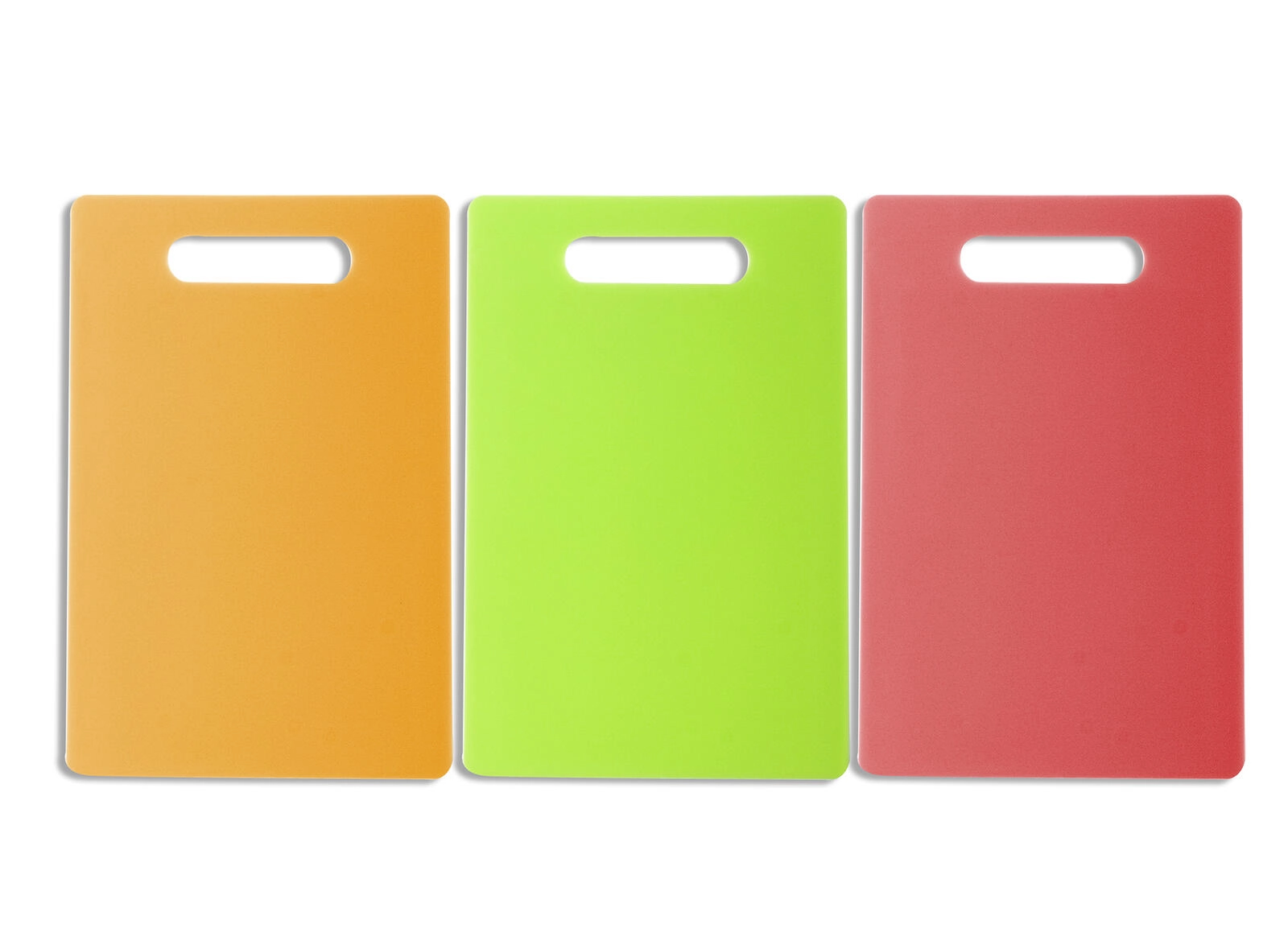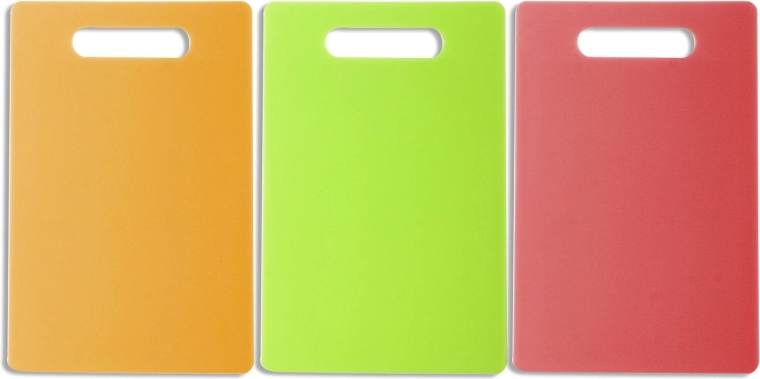 De geïntegreerde opening fungeert als handgreep voor veilig dragen en als haak voor ruimtebesparende opslag. Dankzij de levendige kleuren (oranje, rood, groen) kun je de planken kleuren toewijzen aan verschillende soorten voedsel en kruisbesmetting minimaliseren.
