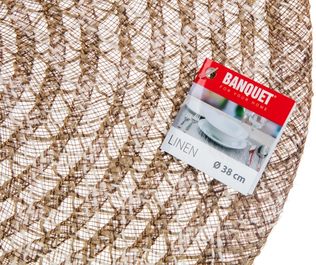 Breng natuurlijke elegantie naar je tafel met de LINEN placemat. De combinatie van jute en polyester zorgt voor een aangename natuurlijke look, extra duurzaamheid en vormvastheid. De ronde vorm met een diameter van 38 cm is ideaal voor borden, schalen en decoraties en beschermt het tafelblad tegen warmte, krassen en vlekken.