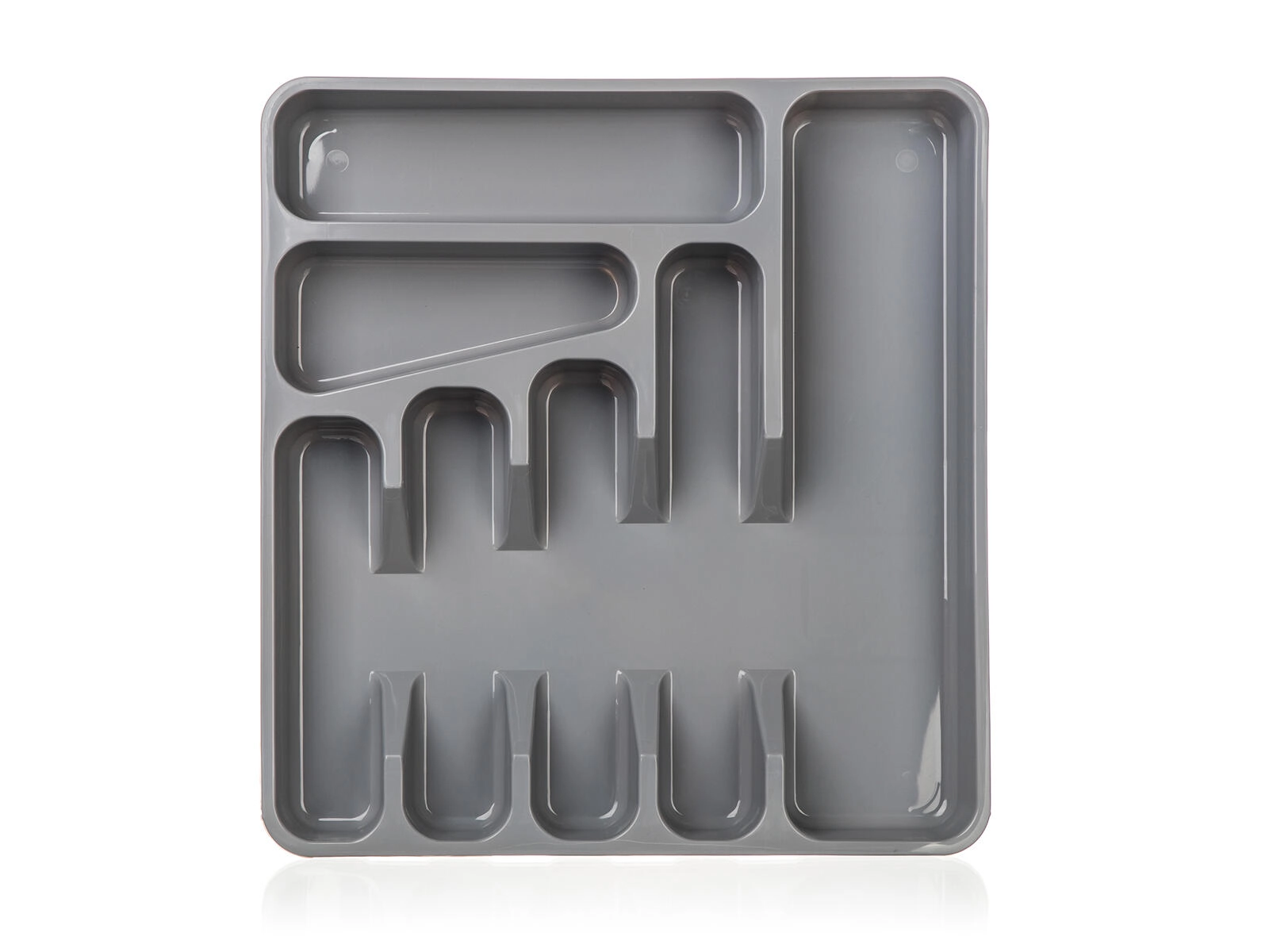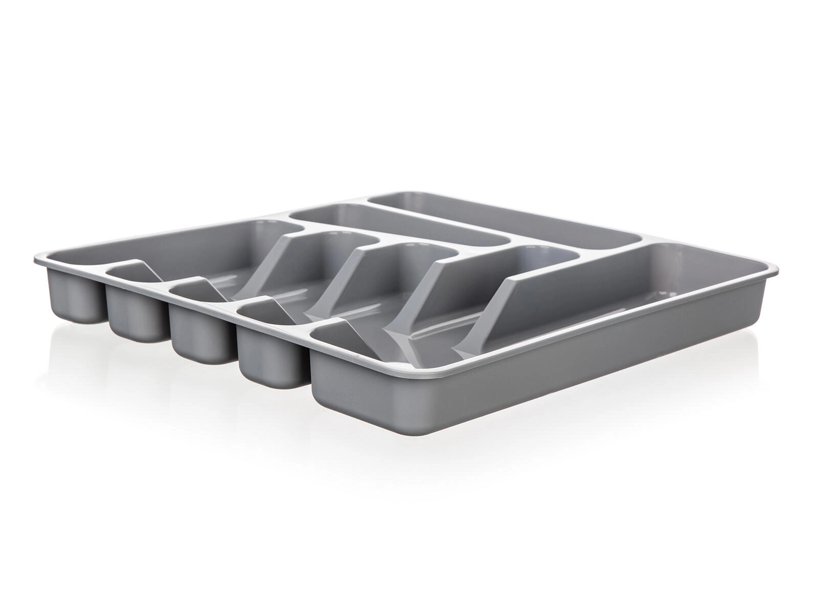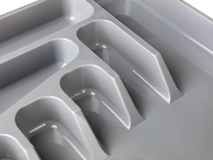 Deze grijze bestekbak van hoogwaardig plastic is een praktische oplossing voor het overzichtelijk opbergen van bestek en klein keukengerei. Dankzij de doordachte vakverdeling heb je vorken, messen, lepels en kleine hulpmiddelen altijd bij de hand en precies op hun plek.