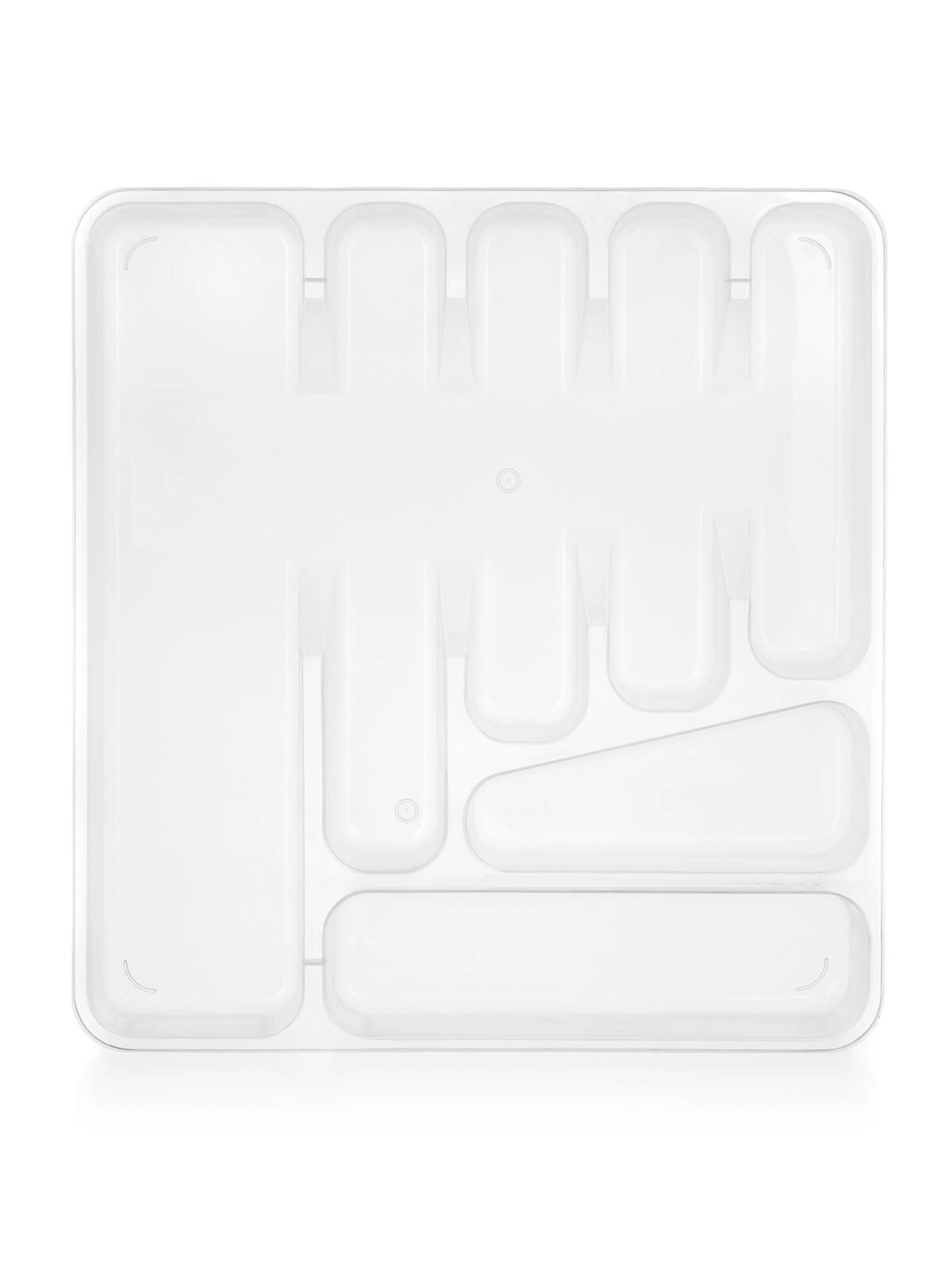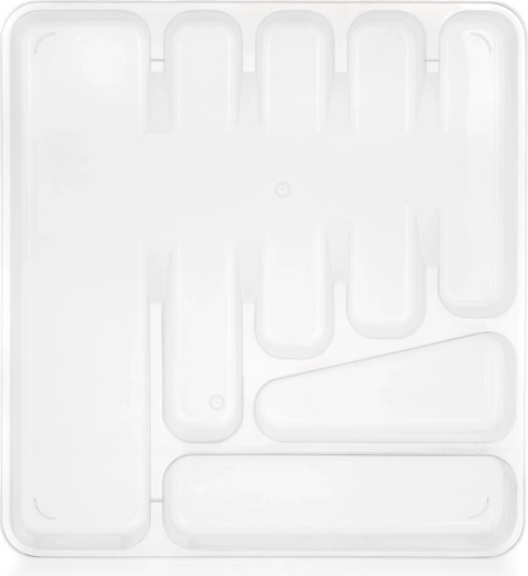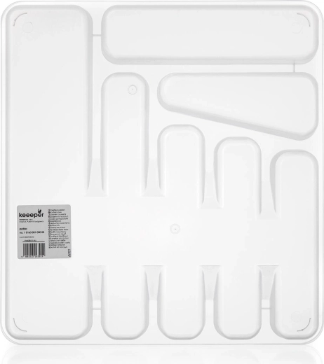 Breng orde in je keukenlade met een functionele en elegante bestekbak van transparant plastic. Hij biedt een slimme indeling voor vorken, messen, lepels en klein keukengerei, zodat je alles altijd bij de hand hebt. Dankzij het lage profiel past hij in de meeste lades en het transparante materiaal zorgt voor snelle oriëntatie.