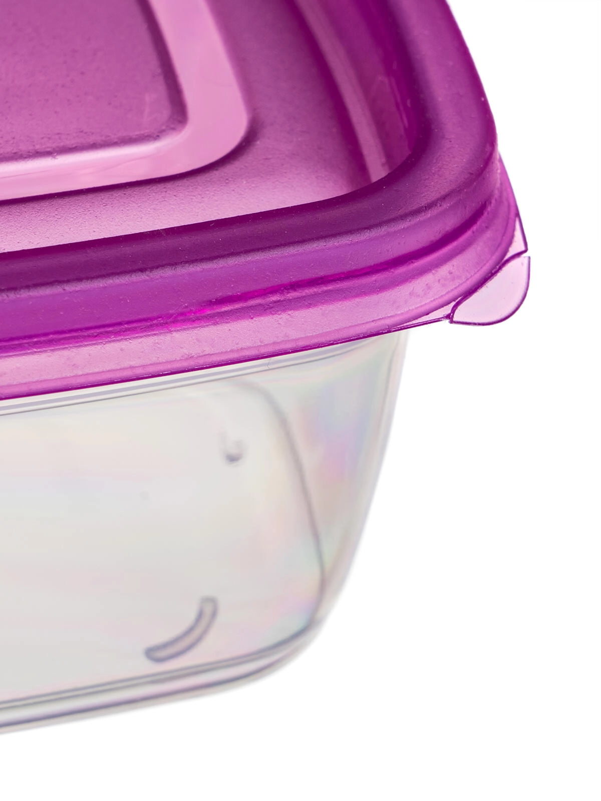 De paarse klikdeksels sluiten de inhoud goed af, beperken morsen en houden voedsel langer vers – ideaal voor in de koelkast en voor onderweg.