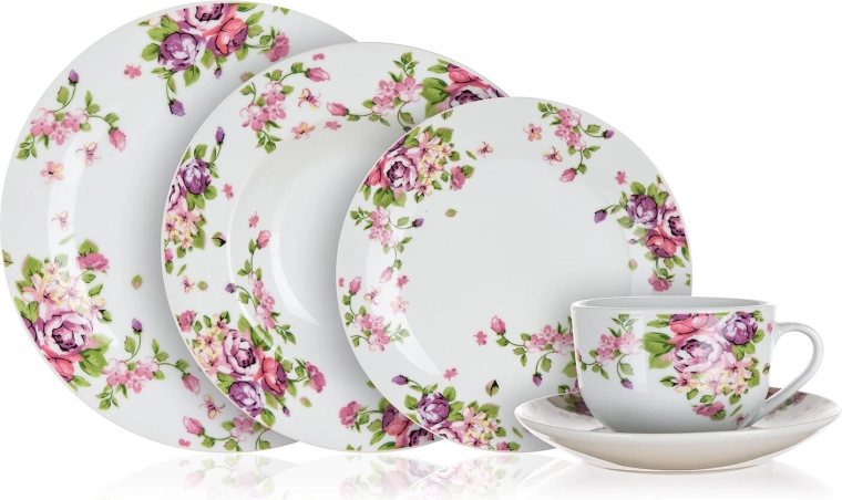 Porselein is bestand tegen dagelijks gebruik, eenvoudig te reinigen en praktisch voor in huis – u kunt het zonder zorgen in de vaatwasser plaatsen en in de magnetron gebruiken. Het tijdloze decor past bij zowel alledaagse als feestelijke tafels en vult de meeste interieurs perfect aan.