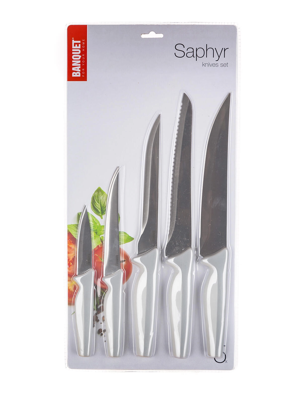 De SAPHYR-messenset is een ideale keuze voor thuiskoks en liefhebbers die veelzijdige tools bij de hand willen hebben voor snijden, portioneren en uitbenen. De hoogwaardige stalen lemmeten zorgen voor hoge scherpte en snijstabiliteit, terwijl de grijze handgrepen een veilige en comfortabele grip bieden.
