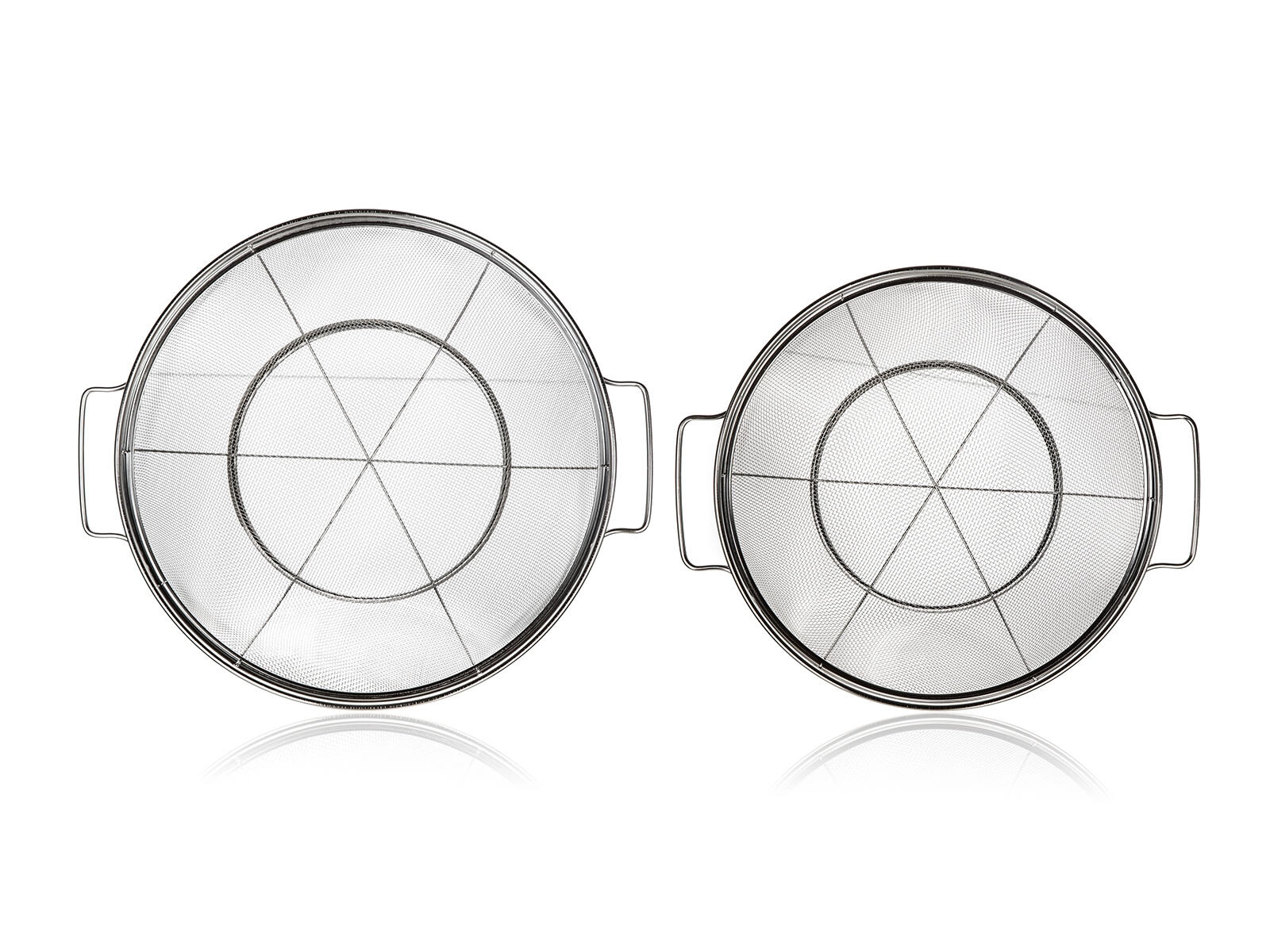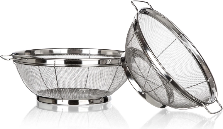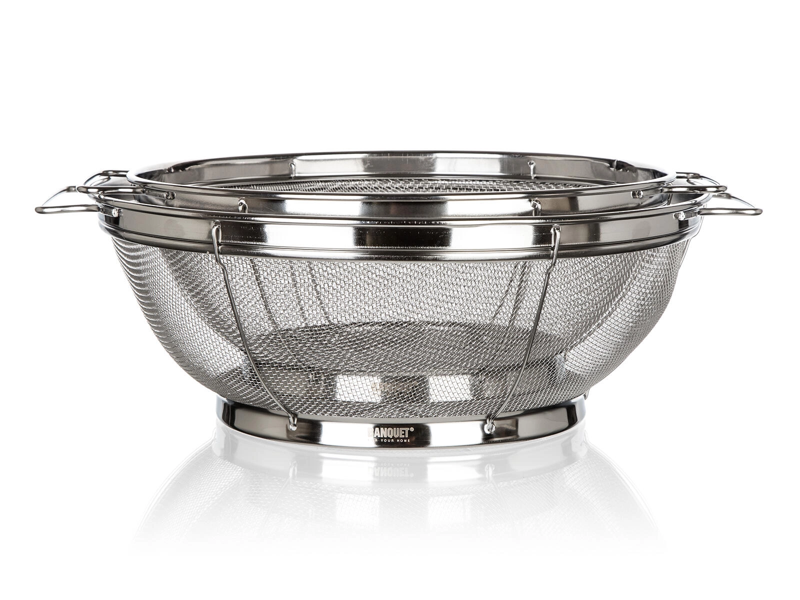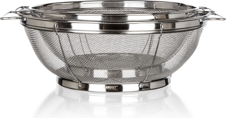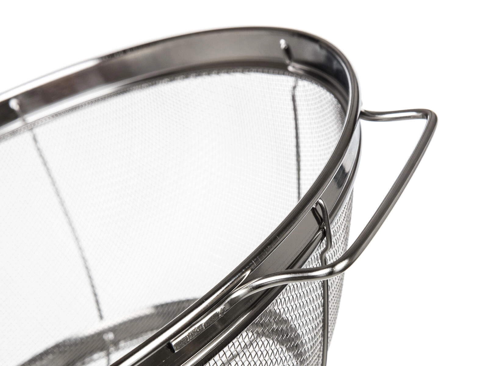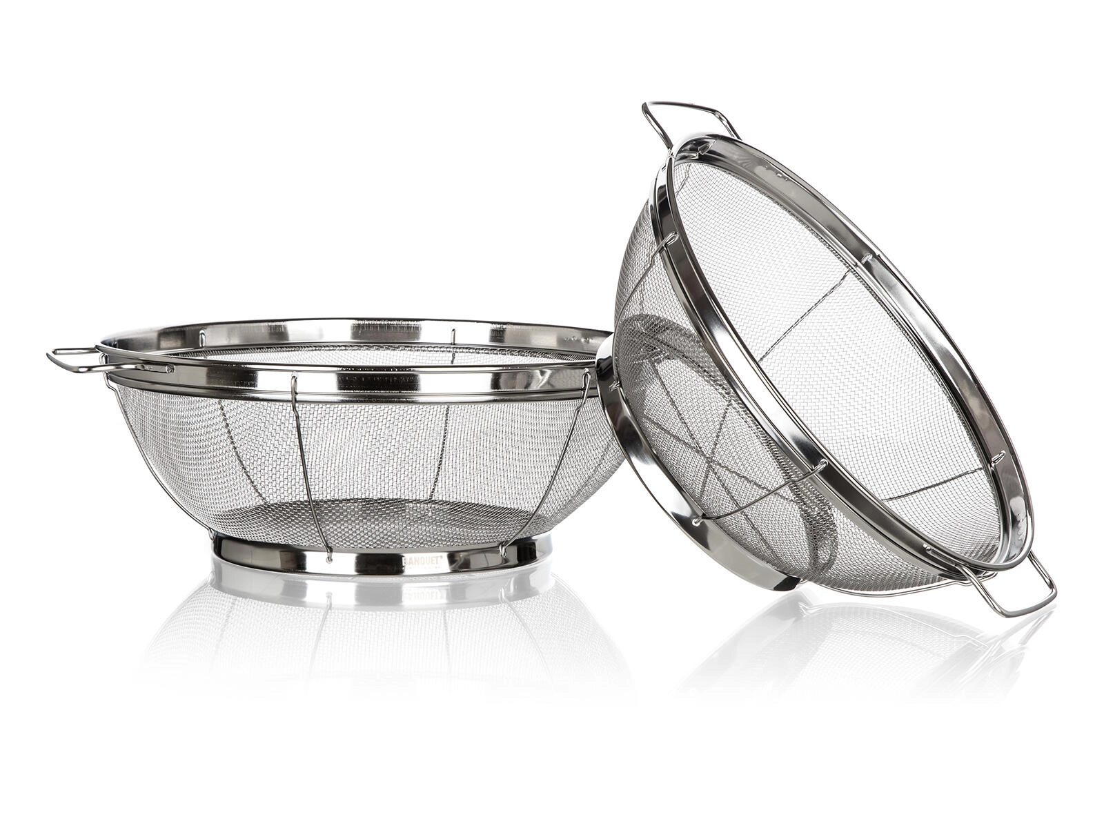 Extra fijn roestvrijstalen gaas houdt zelfs kleine stukjes voedsel tegen en zorgt voor een snelle afvoer van water bij het afspoelen van fruit en groenten en bij het afgieten van pasta.