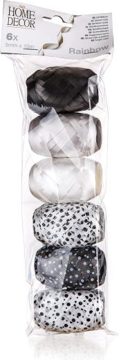 Een elegante set RAINBOW cadeaulinten geeft elk geschenk stijl en kleur. Elk lint heeft een lengte van 10 m en een breedte van 0,5 cm, ideaal voor het inpakken van cadeaus, het versieren van zakjes en het maken van decoraties. De set bevat 6 stuks in verschillende kleuren.