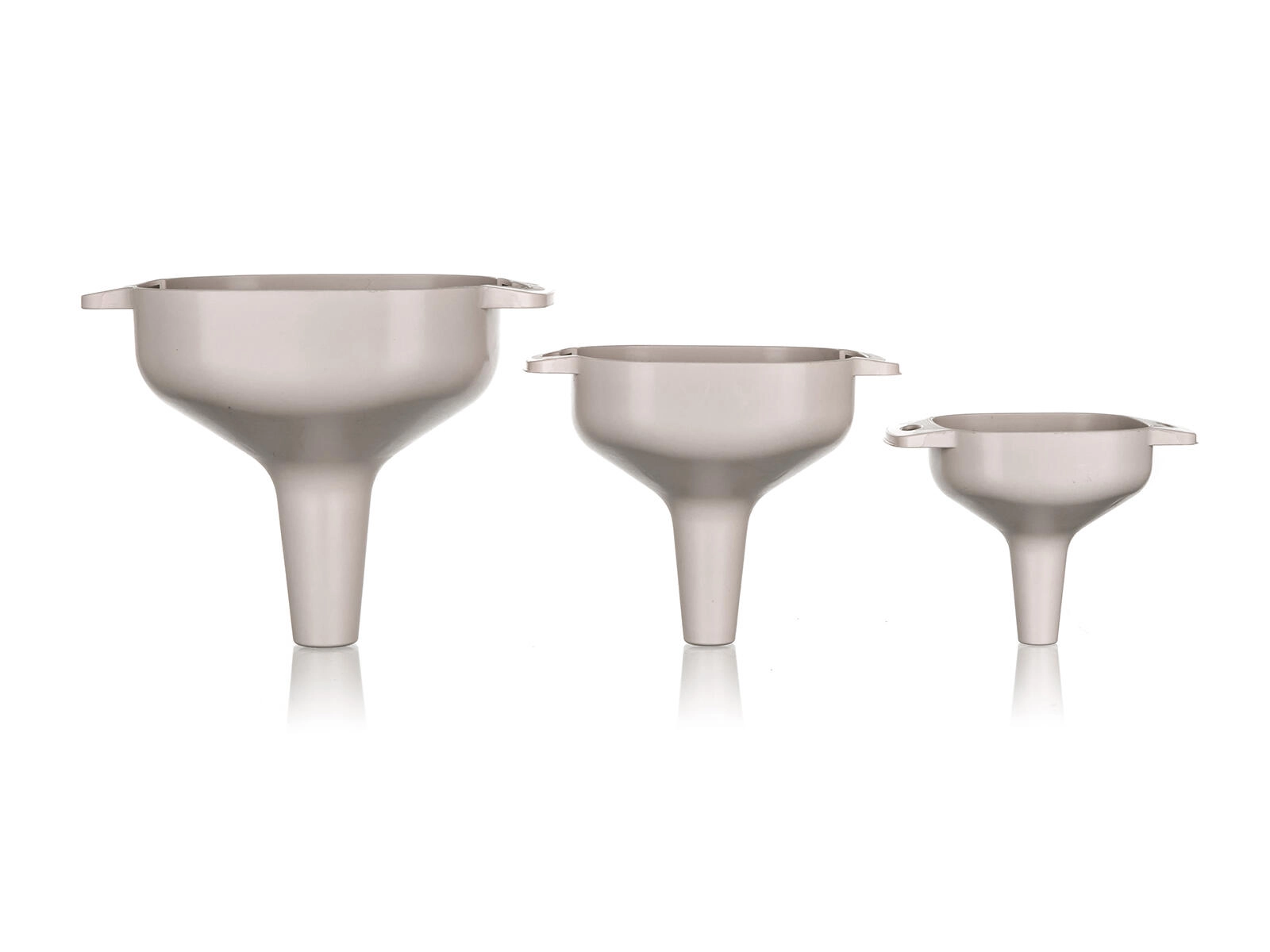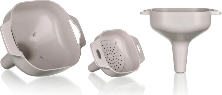 De set bevat kleine, middelgrote en grote trechters voor eenvoudig overgieten in halzen met uiteenlopende breedtes – van kruidenpotjes tot mandflessen.