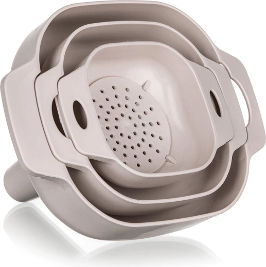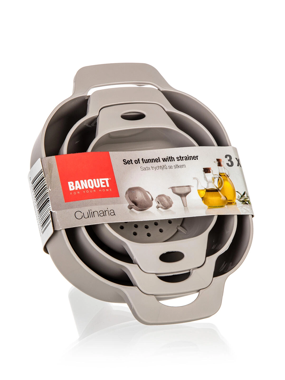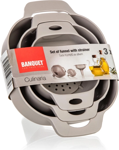 De CULINARIA-set met trechters en zeef is ideaal voor oliën, siropen, likeuren en droge ingrediënten. Drie verschillende maten dekken de alledaagse keukenbehoeften, van kleine flesjes tot grotere potten. De afneembare zeef houdt onzuiverheden, pitjes en bezinksel tegen, zodat het resultaat een schoner overgieten is zonder compromissen.