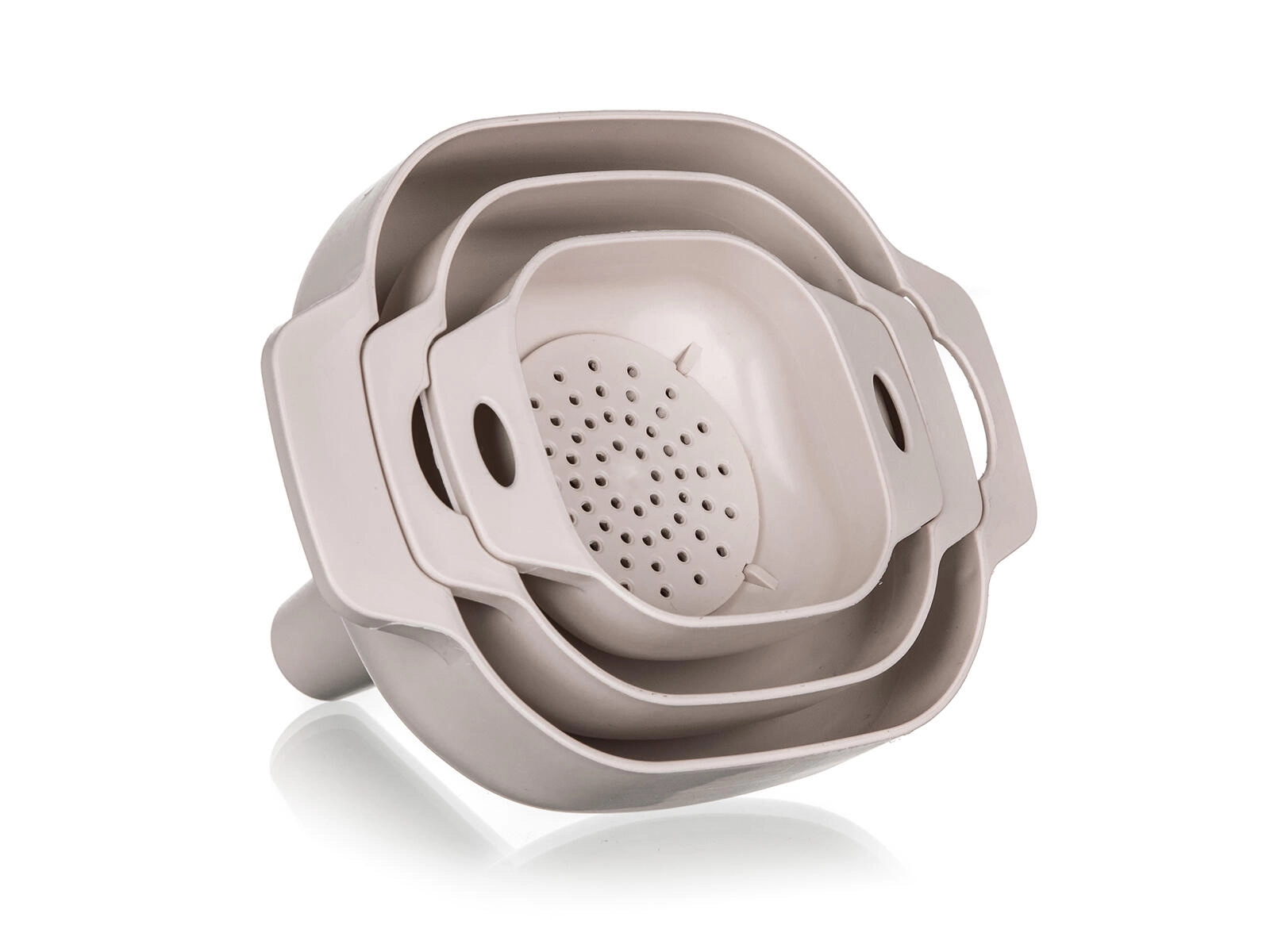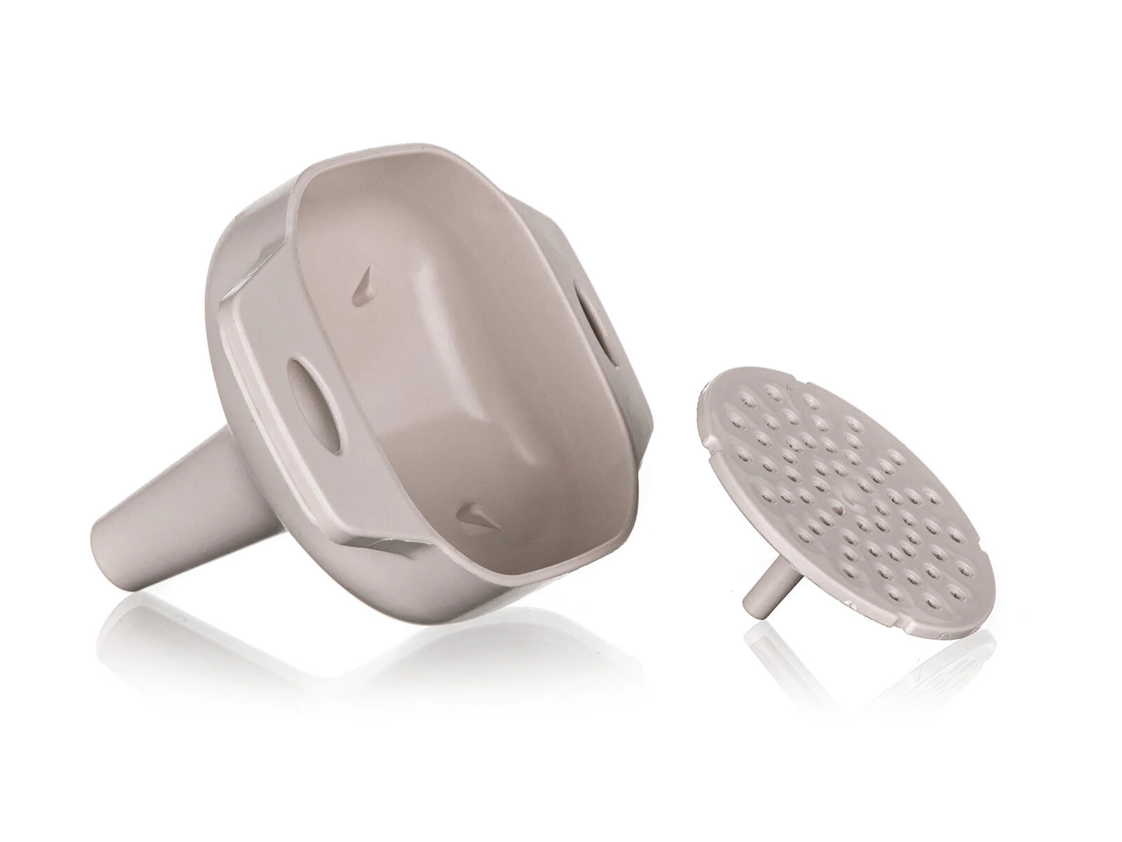 Het lichte en duurzame plastic is eenvoudig te reinigen en vriendelijk voor oppervlakken. Ergonomische vormen met praktische oortjes zorgen voor een comfortabele grip en een nauwkeurige positionering op de hals van de fles of pot. De neutrale latte-kleur past perfect in zowel moderne als klassieke keukens.