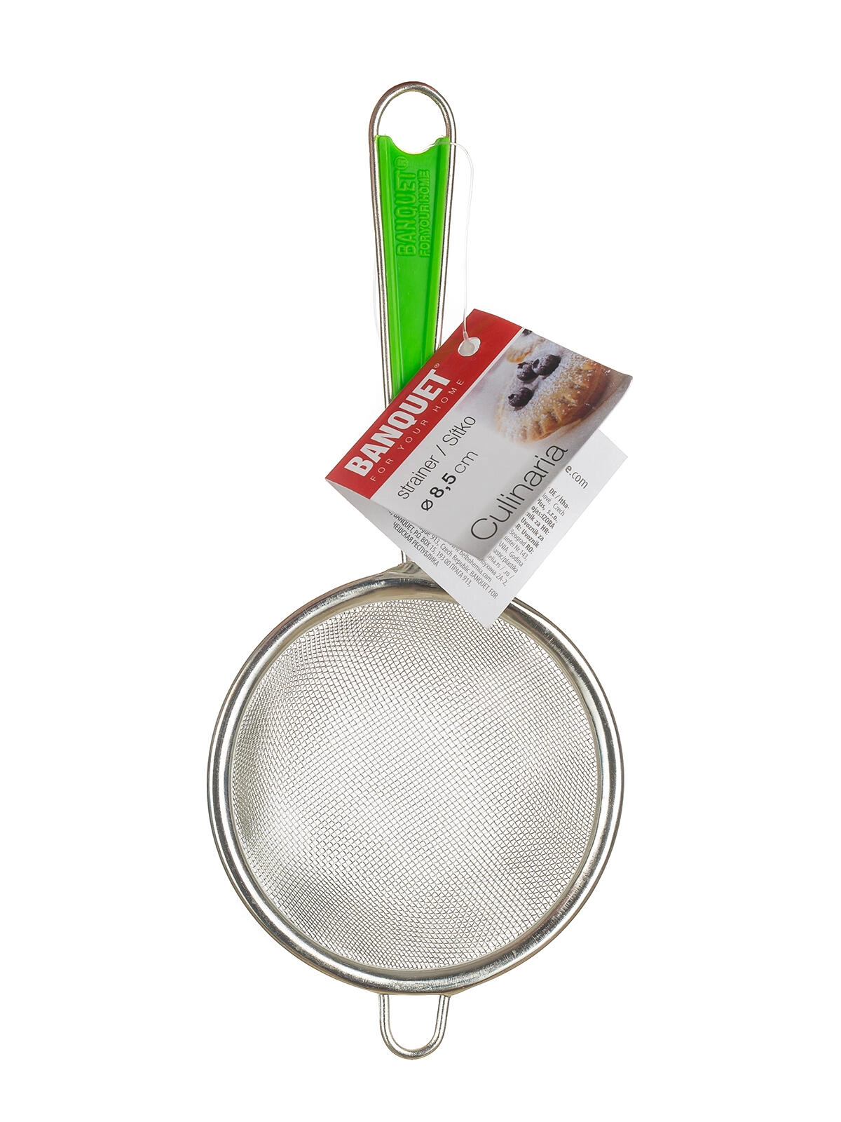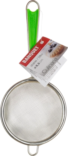Praktische keukenzeef CULINARIA met een diameter van 8,5 cm voor dagelijks zeven van vloeistoffen en dranken. Dankzij het fijne gaas van 1 × 1 mm houdt hij ook kleine onzuiverheden tegen, verzinkt metaal zorgt voor duurzaamheid en de ABS-kunststof inzet in het handvat voor een comfortabele en veilige grip. De stijlvolle groene uitvoering past in elke keuken.