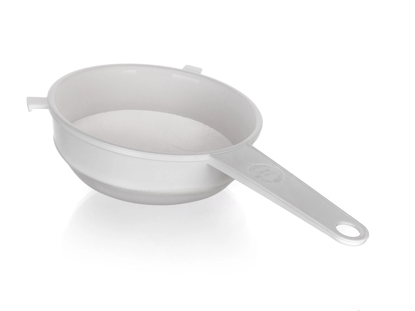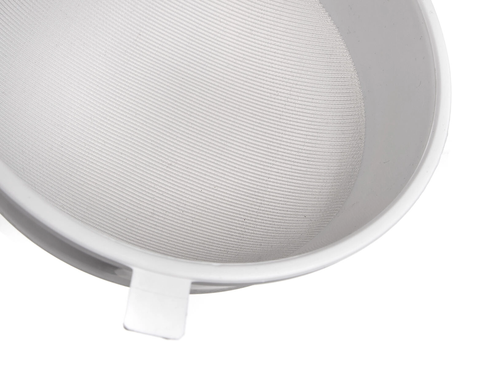 De universele witte zeef met een diameter van 16 cm is een betrouwbare hulp voor dagelijks koken en bakken. Het fijne gaas houdt zelfs kleine deeltjes tegen, waardoor hij geschikt is voor het zeven van bouillons, het spoelen van rijst of het zeven van bloem. De kunststof handgreep met ophangoog ligt prettig in de hand en vergemakkelijkt de bediening.