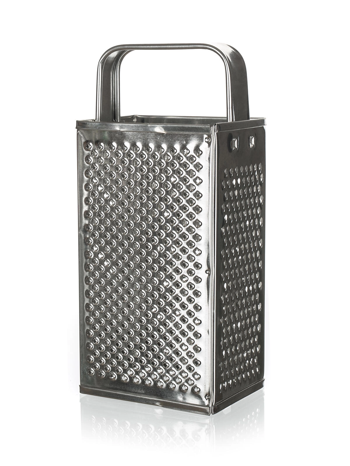 Praktische vierzijdige rasp APETIT van hoogwaardig roestvrij staal voor snel en comfortabel verwerken van etenswaren. Biedt 4 verschillende raspopties, is stabiel tijdens gebruik en gemakkelijk te reinigen.