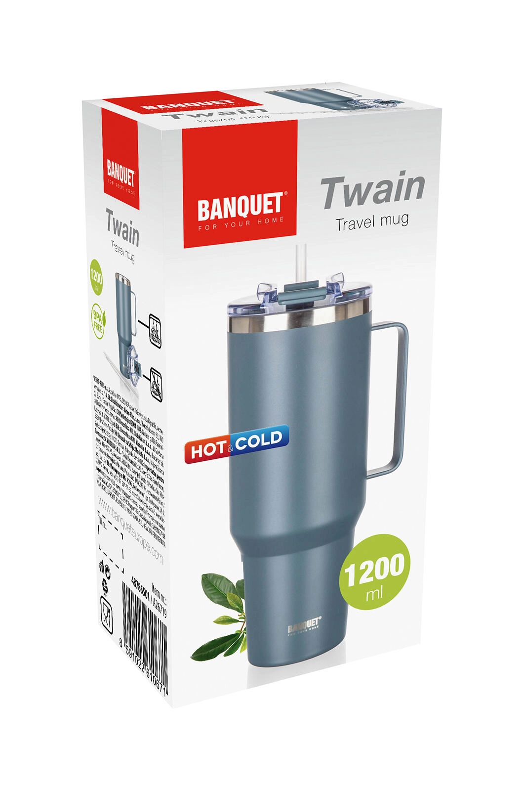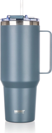 Praktische dubbelwandige TWAIN thermokop 1200 ml houdt je dranken lang warm of koud dankzij vacuümisolatie. Heeft een duurzame roestvrijstalen behuizing, een comfortabel handvat voor makkelijk dragen en een deksel met drink-/rietjesopening. In de verpakking vind je een PP-rietje en reinigingsborsteltje.