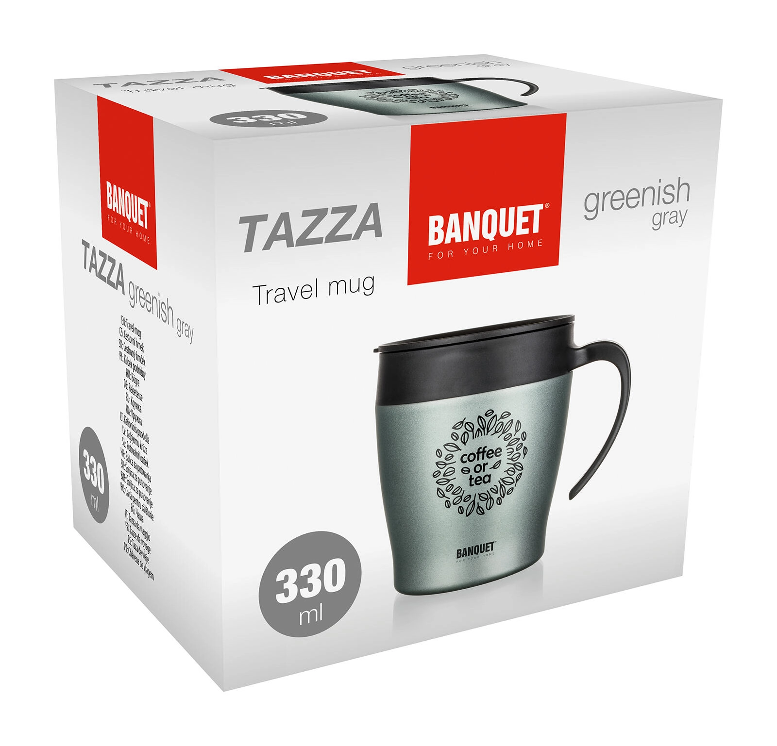 Geniet overal van je favoriete dranken met de BANQUET Tazza reismok van 330 ml. De combinatie van RVS 201 aan de buitenkant en hoogwaardig roestvrij staal 304 aan de binnenkant, samen met de vacuümwand, zorgt voor betrouwbare thermische isolatie en aangename duurzaamheid bij dagelijks gebruik.