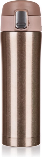 De praktische BODO reistermos met een inhoud van 0,43 l houdt je dranken langer warm of koud dankzij de dubbelwandige RVS-constructie. Hij heeft een flipdeksel met drukknop met een veiligheidsvergrendeling tegen onbedoeld openen en een dichte siliconenafdichting, ideaal voor onderweg, op het werk en op school.