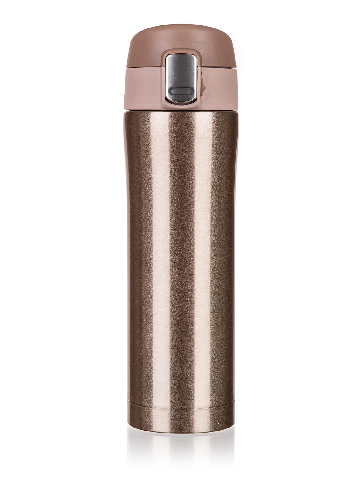 De elegante metallic gouden BODO thermos combineert duurzaam roestvrij staal aan binnen- en buitenzijde met slim éénhands openen. Dankzij de hoogwaardige isolatie blijft koffie, thee of water langer op temperatuur, of je nu in de auto, op kantoor of op trip bent.