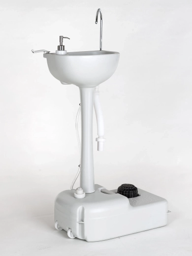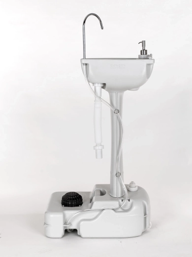 De royale schoonwatertank van 17 liter zorgt voor langdurig gebruik zonder vaak bij te vullen. Het afvalwater voert u eenvoudig af via de meegeleverde slang naar een geschikte container of veilige plek. Voor een compleet mobiel sanitair kan de wasbak worden gekoppeld aan een draagbaar toilet, waarbij het afvalwater van de wasbak voor het doorspoelen wordt hergebruikt.