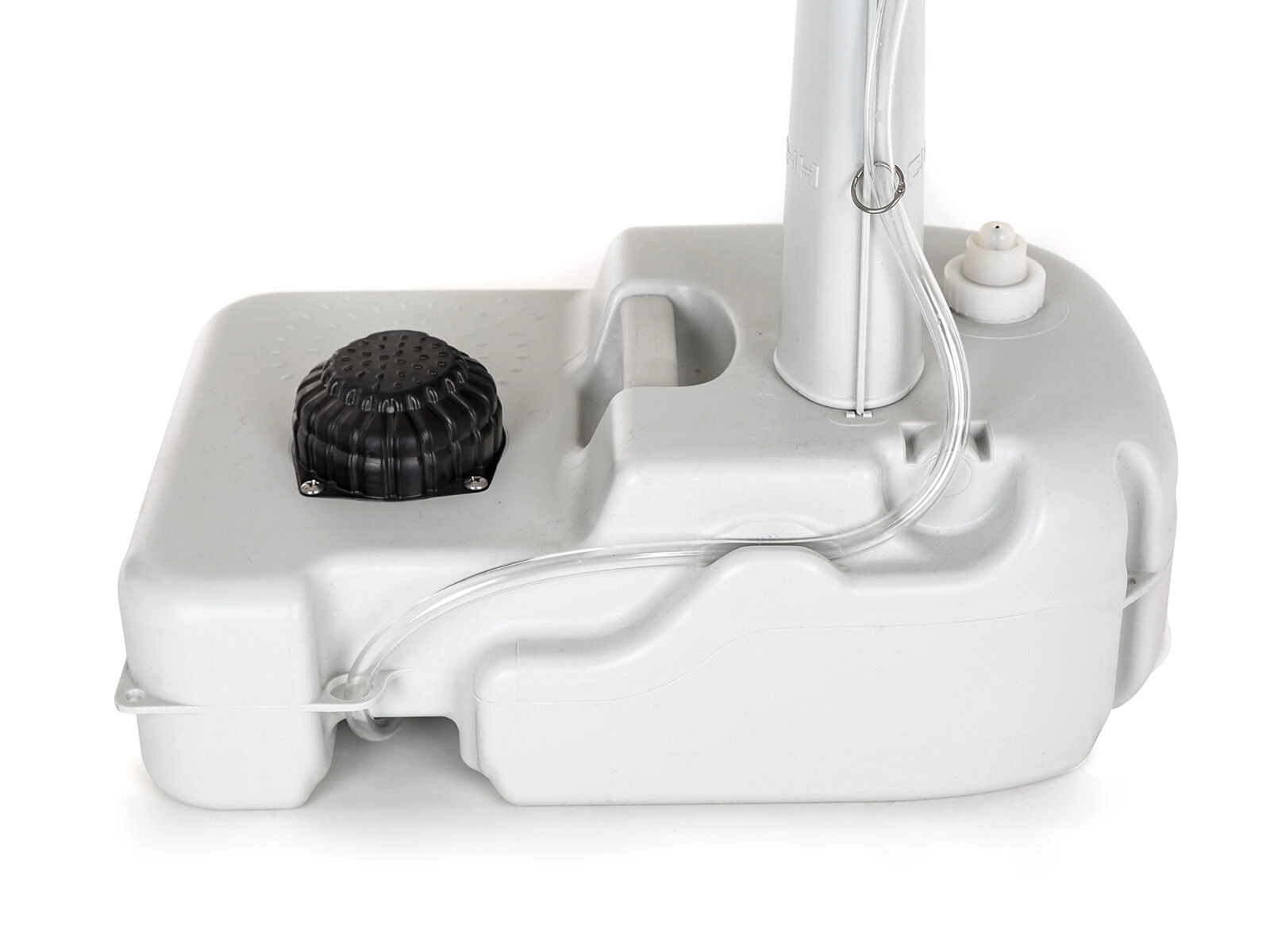 Met de aangesloten slang voert u het afvalwater af naar een geschikte container of gewenste plek. Ook koppelbaar aan een draagbaar toilet voor zuinig doorspoelen.