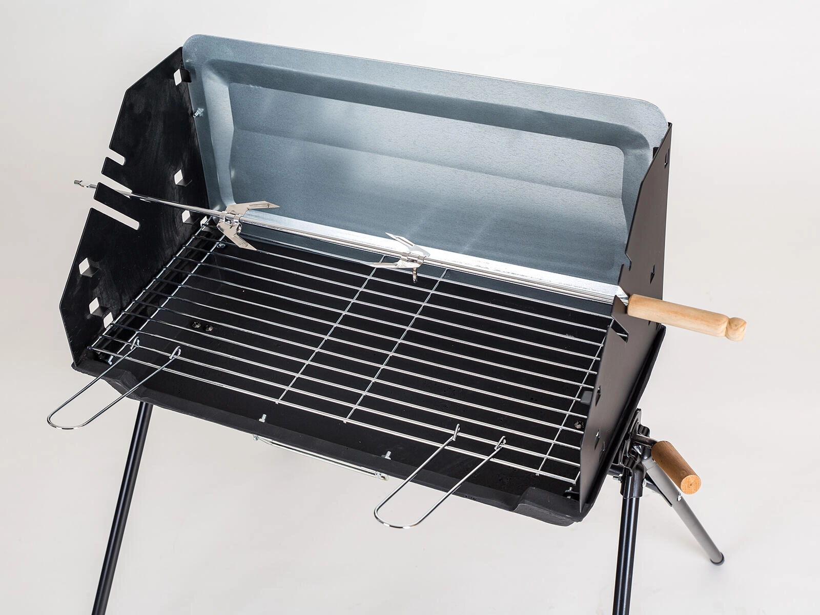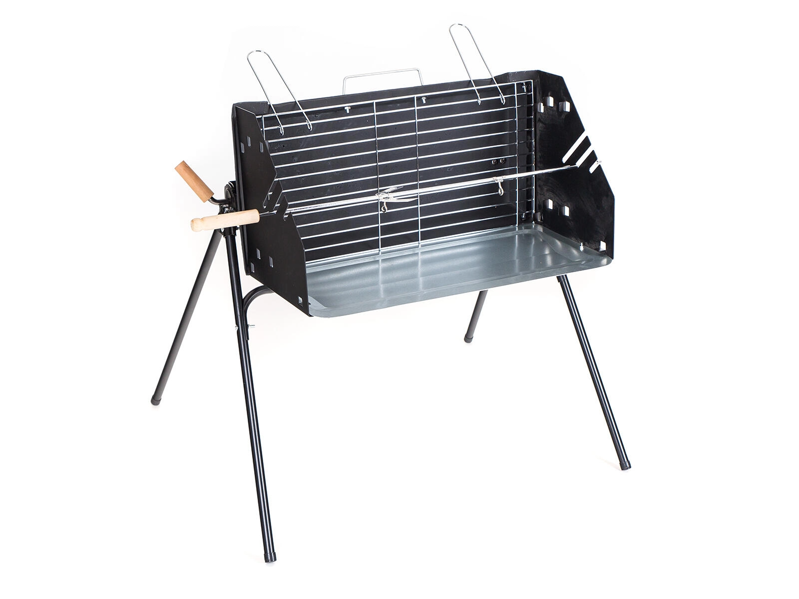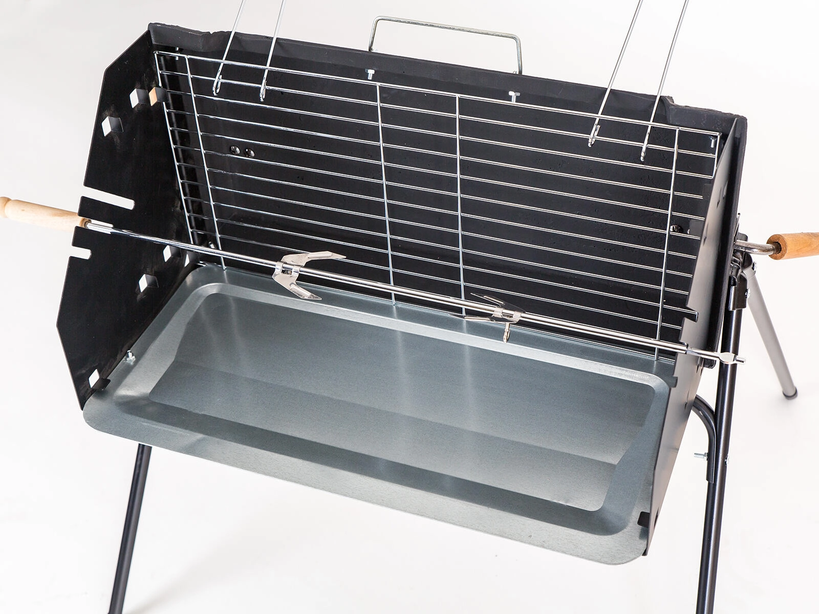 Inclusief een draaiend spit met twee dubbele vorken voor veilige bevestiging van vlees. Bereid sappige braadstukken met minimaal rook en vuil.