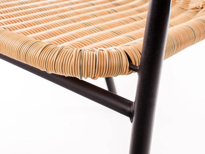 De brede zitting en gevormde rugleuning met vlechtwerk bieden comfort en steun tijdens het ontspannen op terras en balkon.