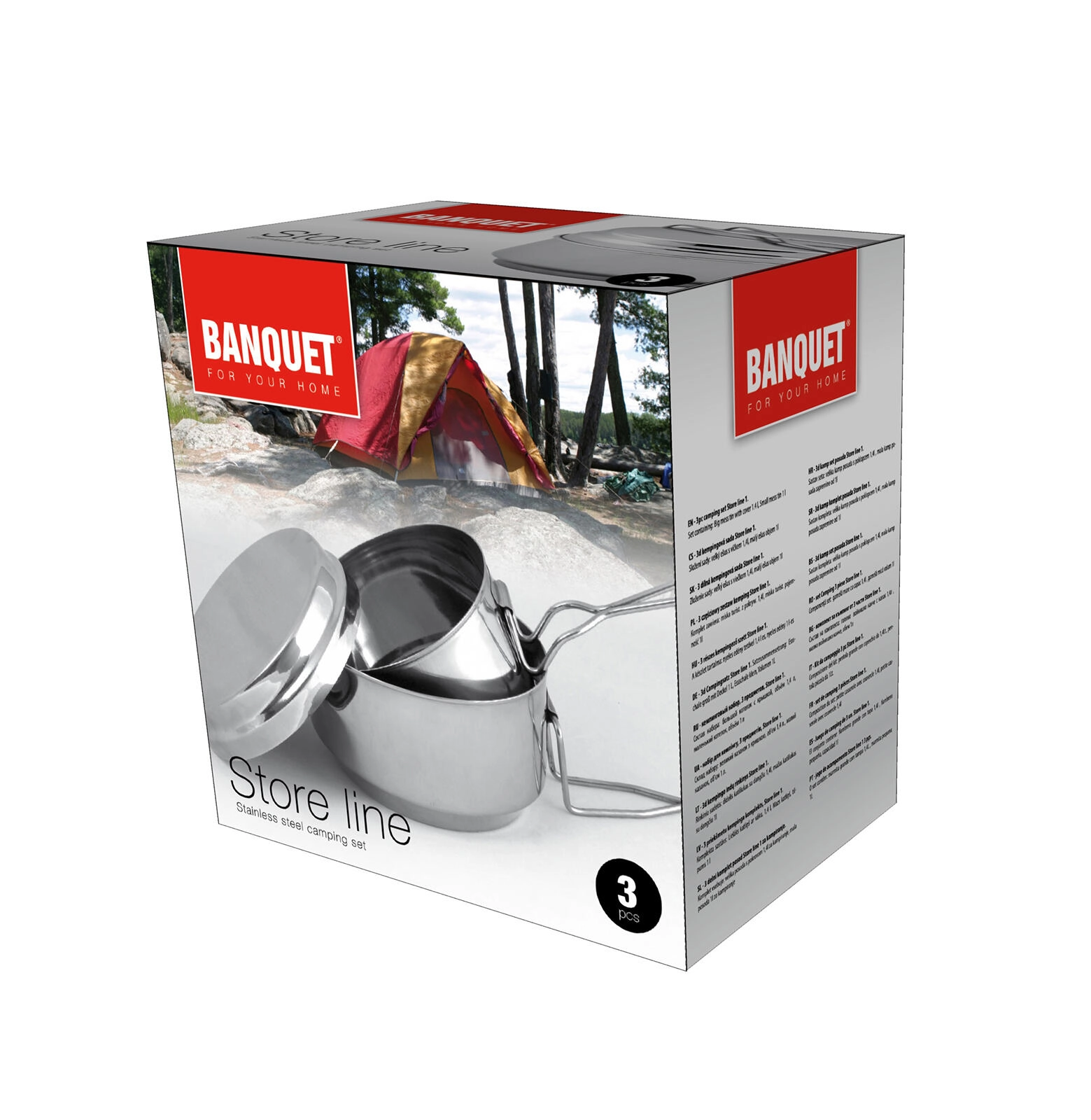 Ontdek een betrouwbare RVS gamelset voor kamperen, trekking en reizen. Twee pannen met diameters van 15 cm (1,4 l) en 13 cm (1 l) worden aangevuld met een deksel dat de verwarmingsefficiëntie verbetert en het eten beschermt. Roestvrij staal 14/1 is onderhoudsvriendelijk, corrosiebestendig en ideaal voor herhaald outdoorgebruik.