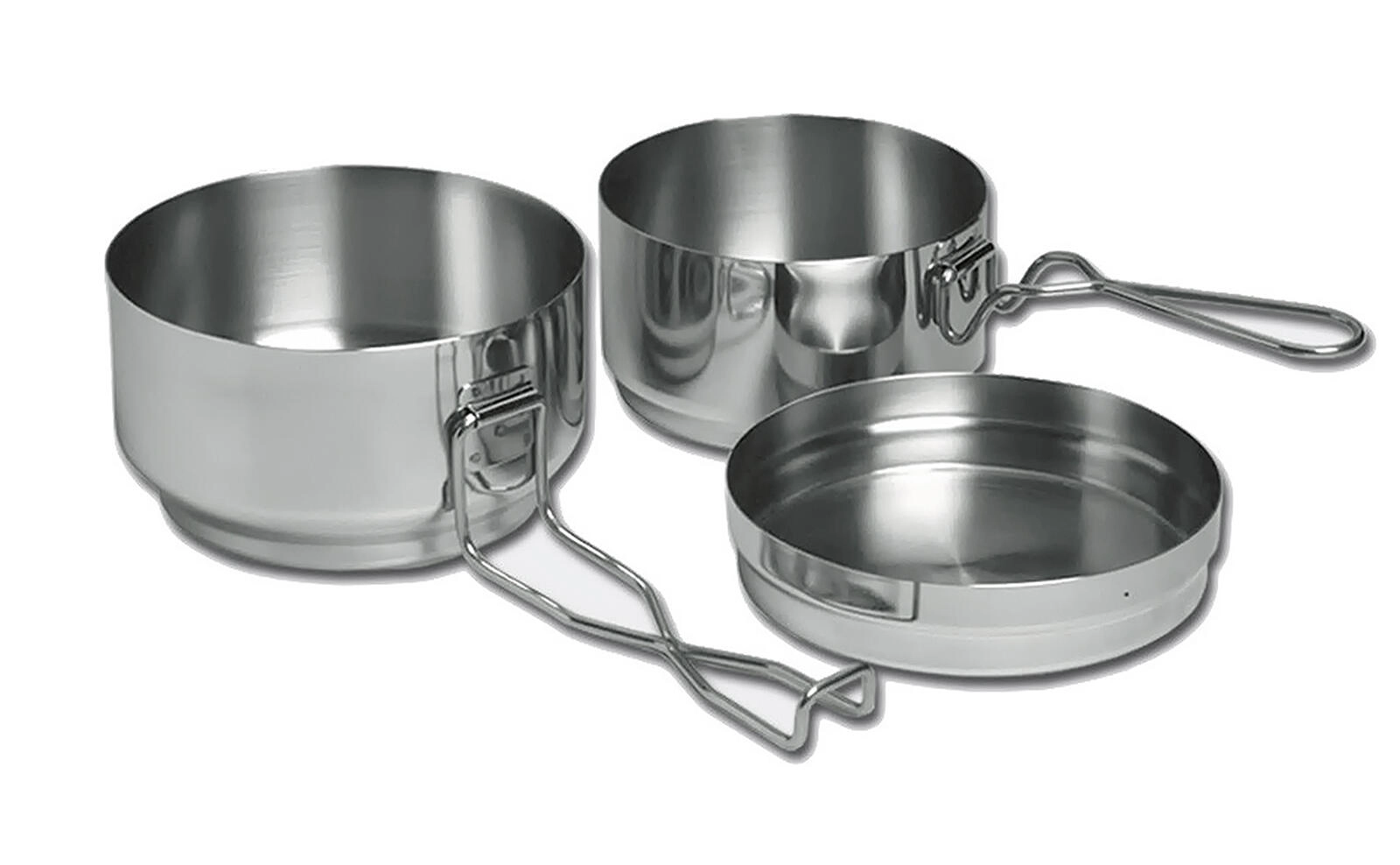 Dankzij de inklapbare draadgrepen is de bediening veilig en comfortabel, terwijl de stapelbare constructie het mogelijk maakt de ene pan in de andere op te bergen voor minimale ruimte-inname. De materiaaldikte van 0,40 mm zorgt voor een uitgebalanceerde combinatie van lichtheid en stevigheid – een perfecte keuze voor backpackers en familie-uitstapjes.