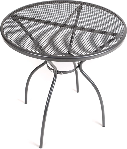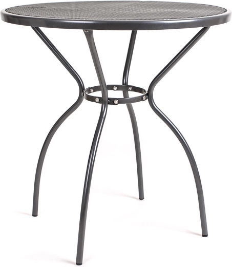 Het geperforeerde (mesh) tafelblad zorgt voor snelle waterafvoer en eenvoudige reiniging, terwijl de stevige buisvormige poten met bodemdoppen oppervlakken helpen beschermen en de stabiliteit vergroten. De tafel is geschikt als bistrot tafel, bijzettafel of kleine eettafel voor buiten.