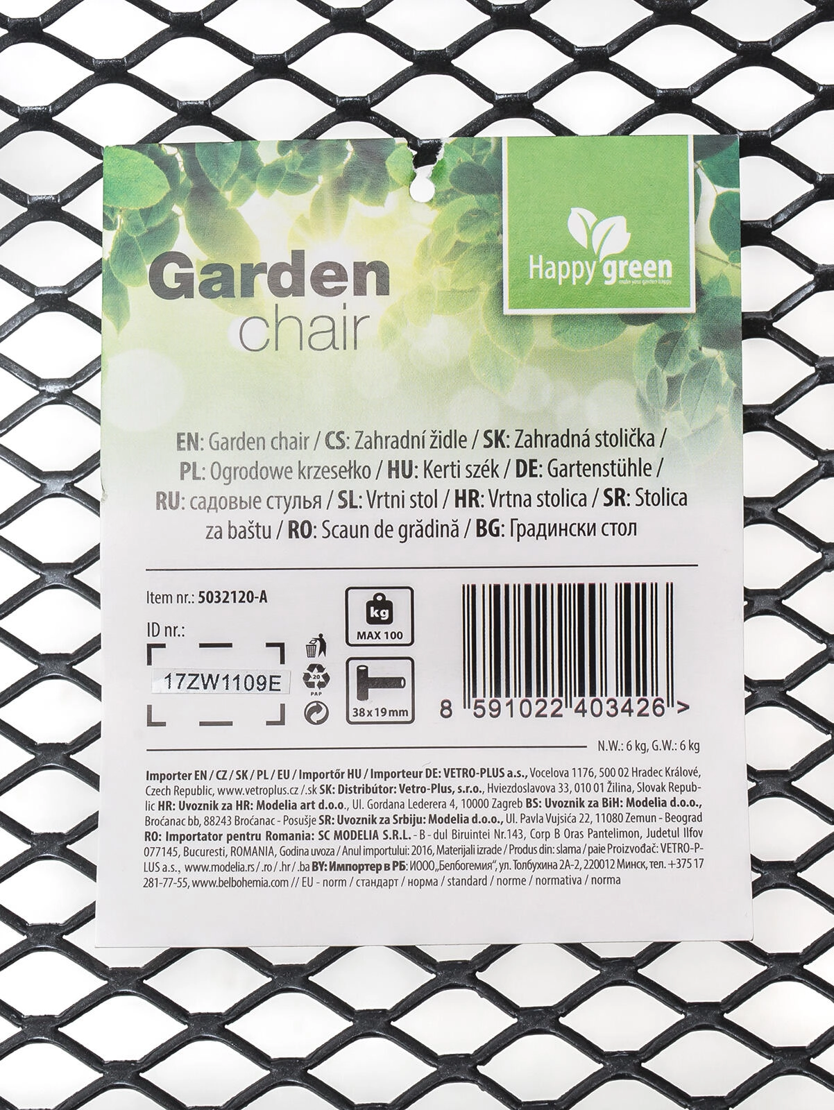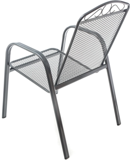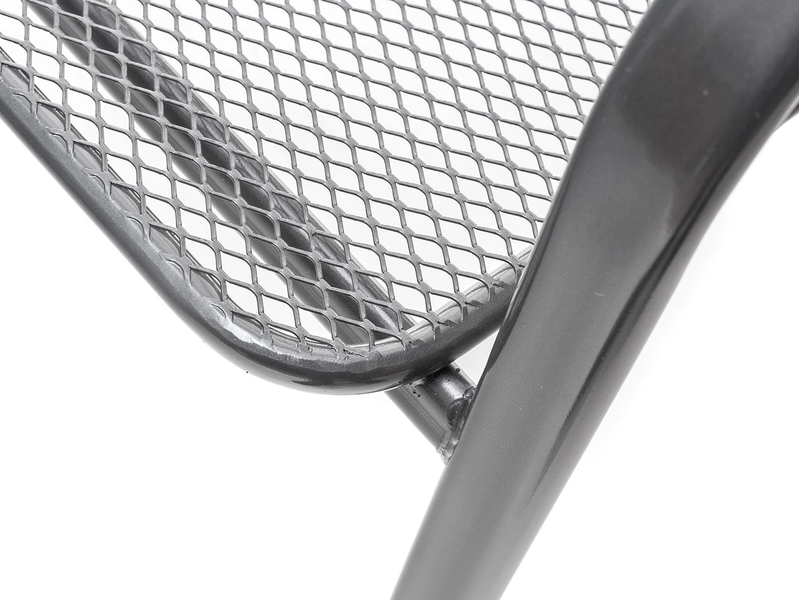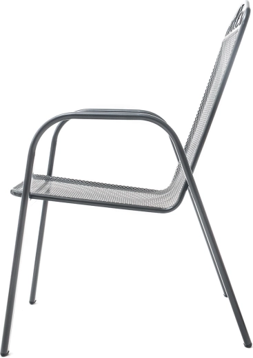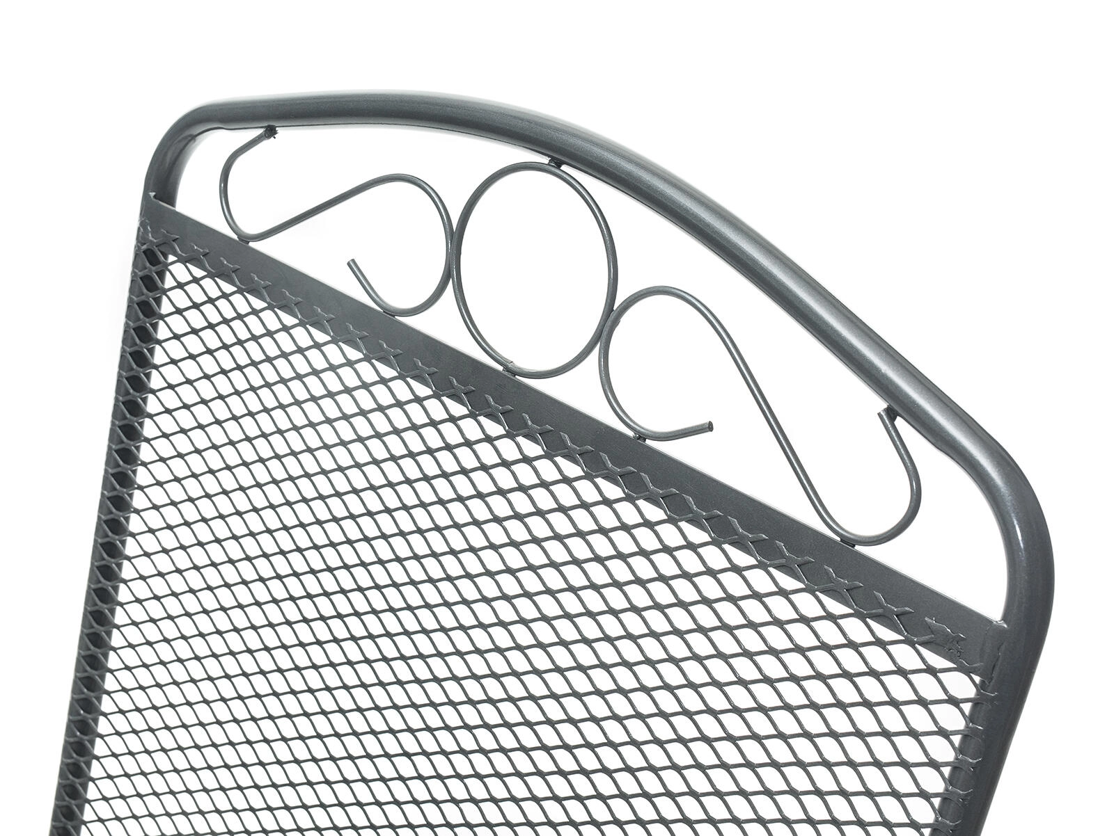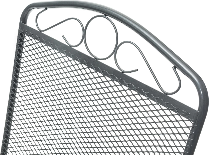 Deze stalen tuinstoel combineert een klassieke uitstraling met moderne duurzaamheid. Het subtiele decor aan de bovenzijde van de rugleuning voegt stijl toe, terwijl het metalen gaas van zitting en rug comfort, snelle afwatering en gemakkelijk onderhoud biedt. Het robuuste buisframe zorgt voor stabiliteit bij dagelijks buitengebruik.