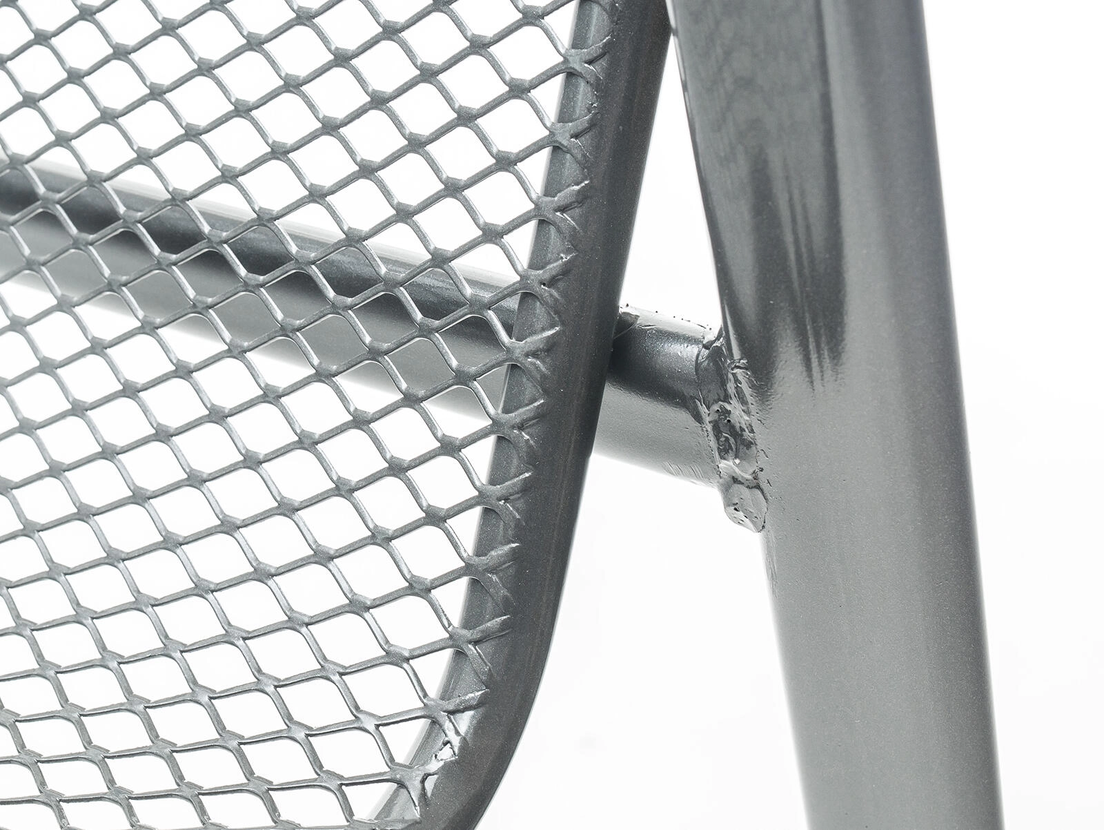 Dankzij de geavanceerde oppervlaktebescherming – een basislaag E-coating voor diepgaande anticorrosiebescherming en een eindlaag poedercoating – weerstaat de stoel jarenlang weersinvloeden. De praktische stapelbaarheid bespaart ruimte op terras, balkon en in de opslag.