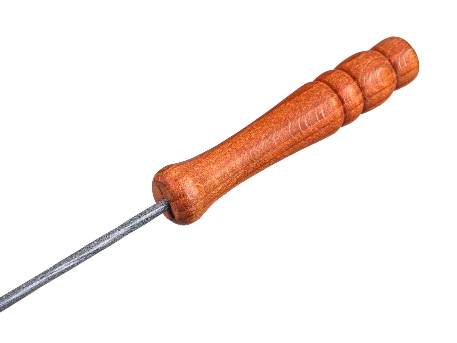 Het prettige houten handvat ligt comfortabel in de hand en verbetert de controle bij het draaien en hanteren boven het vuur.