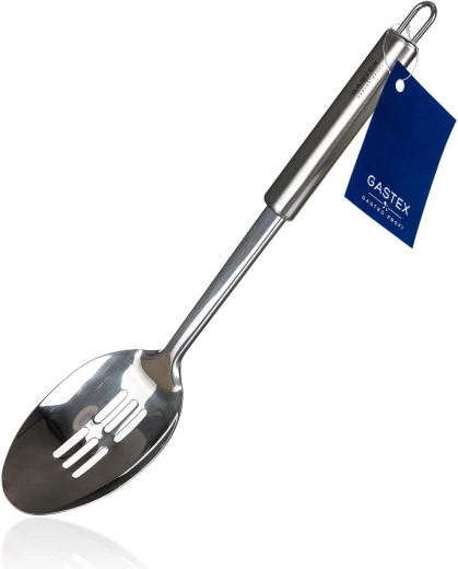 Dankzij het praktische ophangoog kun je de lepel eenvoudig ophangen en altijd binnen handbereik houden. Het gladde oppervlak van roestvrij staal is makkelijk te reinigen en geschikt voor de vaatwasser. De GASTEX-serie keukengerei voldoet aan de eisen van professionals en is tegelijk een perfecte keuze voor thuis.