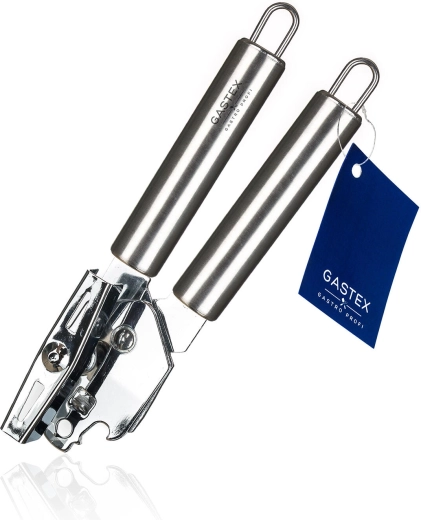 Praktische AZORA-blikopener met klassiek vleugelmechanisme voor eenvoudig en soepel openen. Gemaakt van hoogwaardig roestvrij staal, geschikt voor professioneel en huishoudelijk gebruik, en voorzien van een duurzame constructie met een ophangoog.