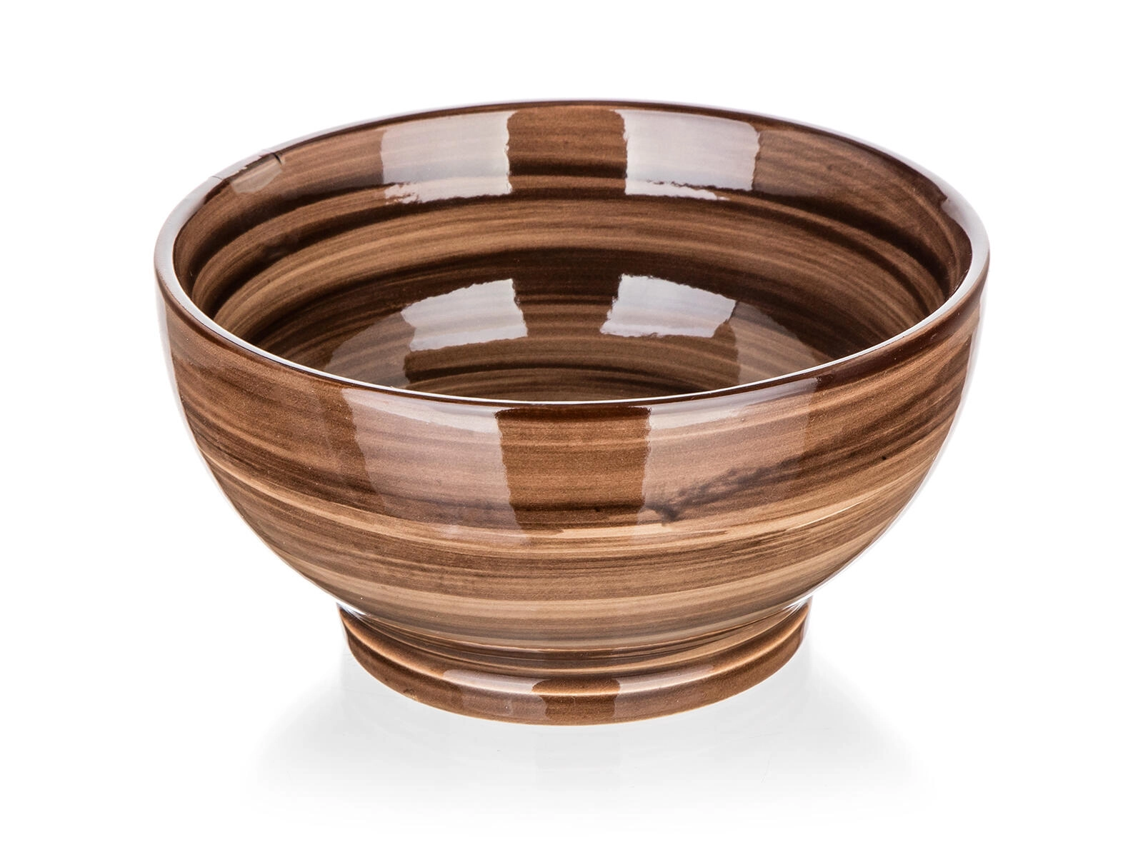 Stijlvolle keramische kom PALAS met een diameter van 14,3 cm en een inhoud van 610 ml, ideaal voor ontbijt, soepen en tussendoortjes. Dankzij de slijtvaste glazuur is ze gemakkelijk schoon te maken en geschikt voor vaatwasser en magnetron. Het elegante bruine gestreepte design geeft je tafelsetting een natuurlijke uitstraling.