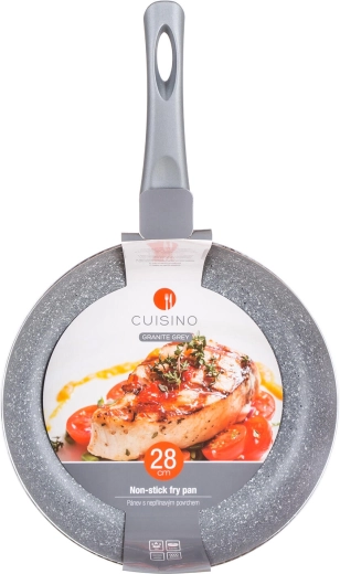 Deze aluminium pan CUISINO Granite Grey met een diameter van 28 cm biedt een 2-laagse antiaanbaklaag, waardoor eten niet aanbrandt en het schoonmaken snel en eenvoudig is. De buitenzijde met een hittebestendige coating verhoogt de duurzaamheid bij dagelijks gebruik.