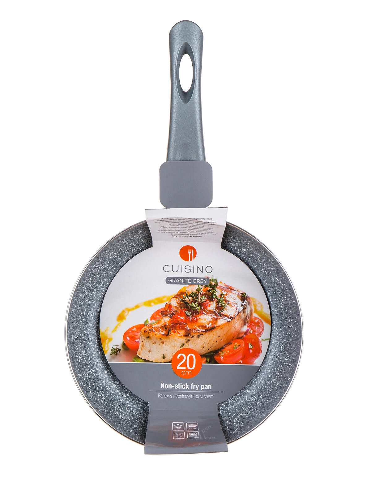 Ontdek de betrouwbare en praktische CUISINO Granite Grey pan met een diameter van 20 cm en een hoogte van 4,5 cm. Dankzij de twee-laagse antiaanbaklaag branden gerechten niet aan en is de pan eenvoudig te reinigen. Het aluminium lichaam zorgt voor een snelle opwarming en gelijkmatige warmteverdeling, zodat u telkens uitstekende resultaten behaalt.
