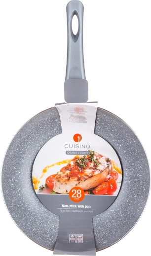 De CUISINO Granite Grey wokpan zorgt voor comfortabeler en gezonder koken dankzij de 2-laagse antiaanbaklaag, die de behoefte aan olie minimaliseert en aanbranden voorkomt. Het robuuste aluminium lichaam zorgt voor snelle opwarming en een stabiele temperatuur over het gehele oppervlak.